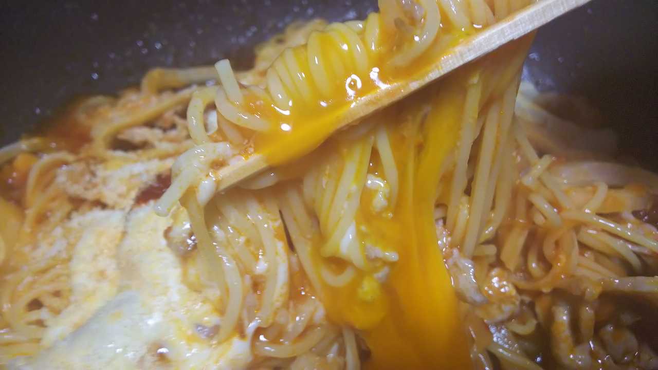今朝は、新玉ねぎ丸ごと一個で、ナポリタン