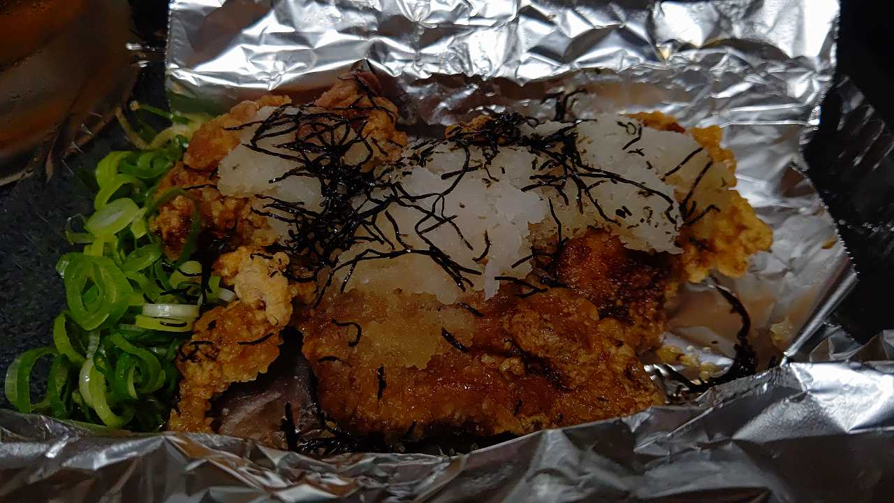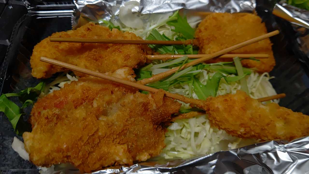 今日は、手羽先唐揚げのタレと、ポンカラと、串カツ盛り合わせです。