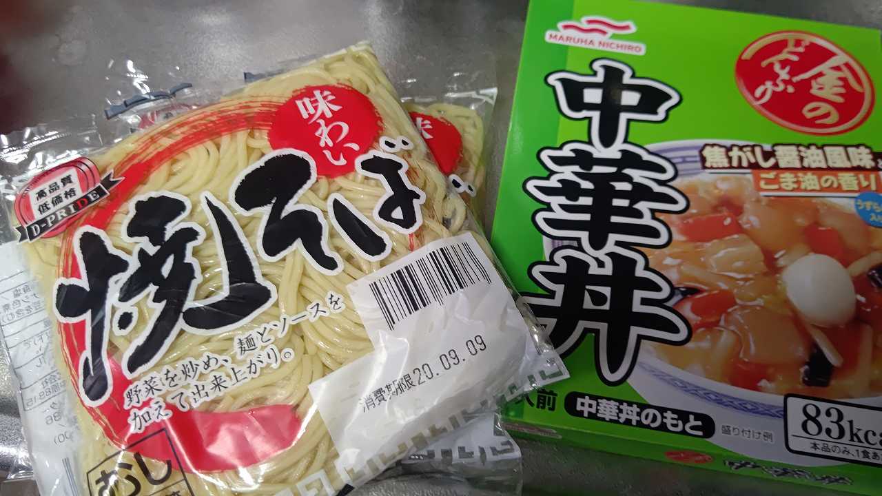 麺、ほぐさないで、そのまま両側に1パックごと。。。真ん中に中華丼のレトルトパック入れて。。。