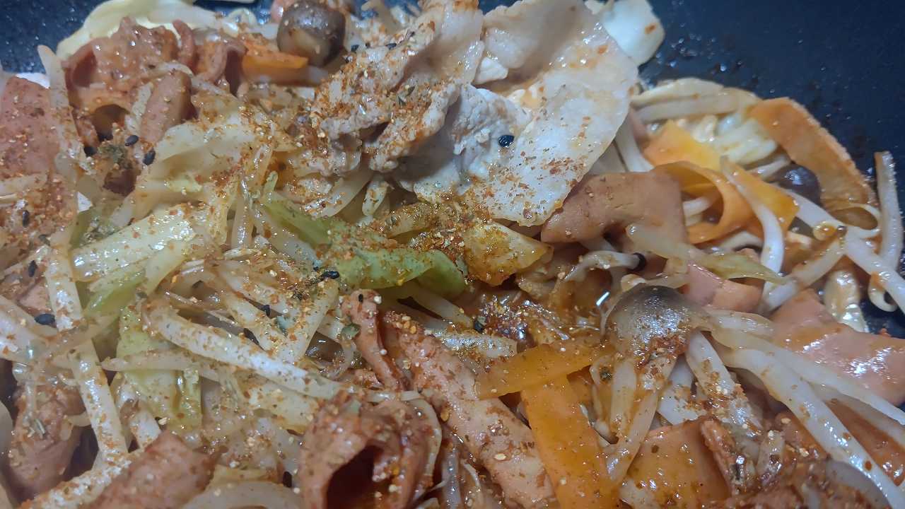 帰って来て、ラムーで買い物して、こてっちゃんと、豚肉の野菜炒めで、一杯