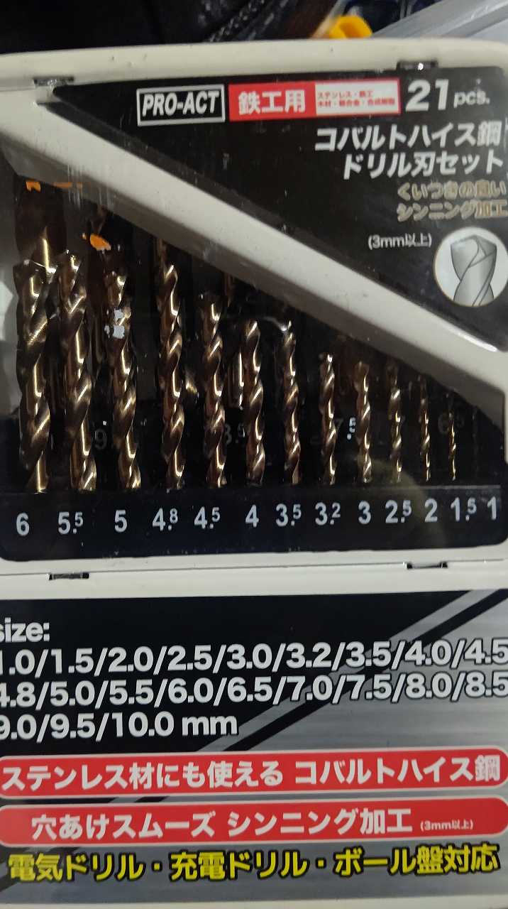 この、2mmの穴開けるために、コーナンプロで一番高いセット買ってきて。。。