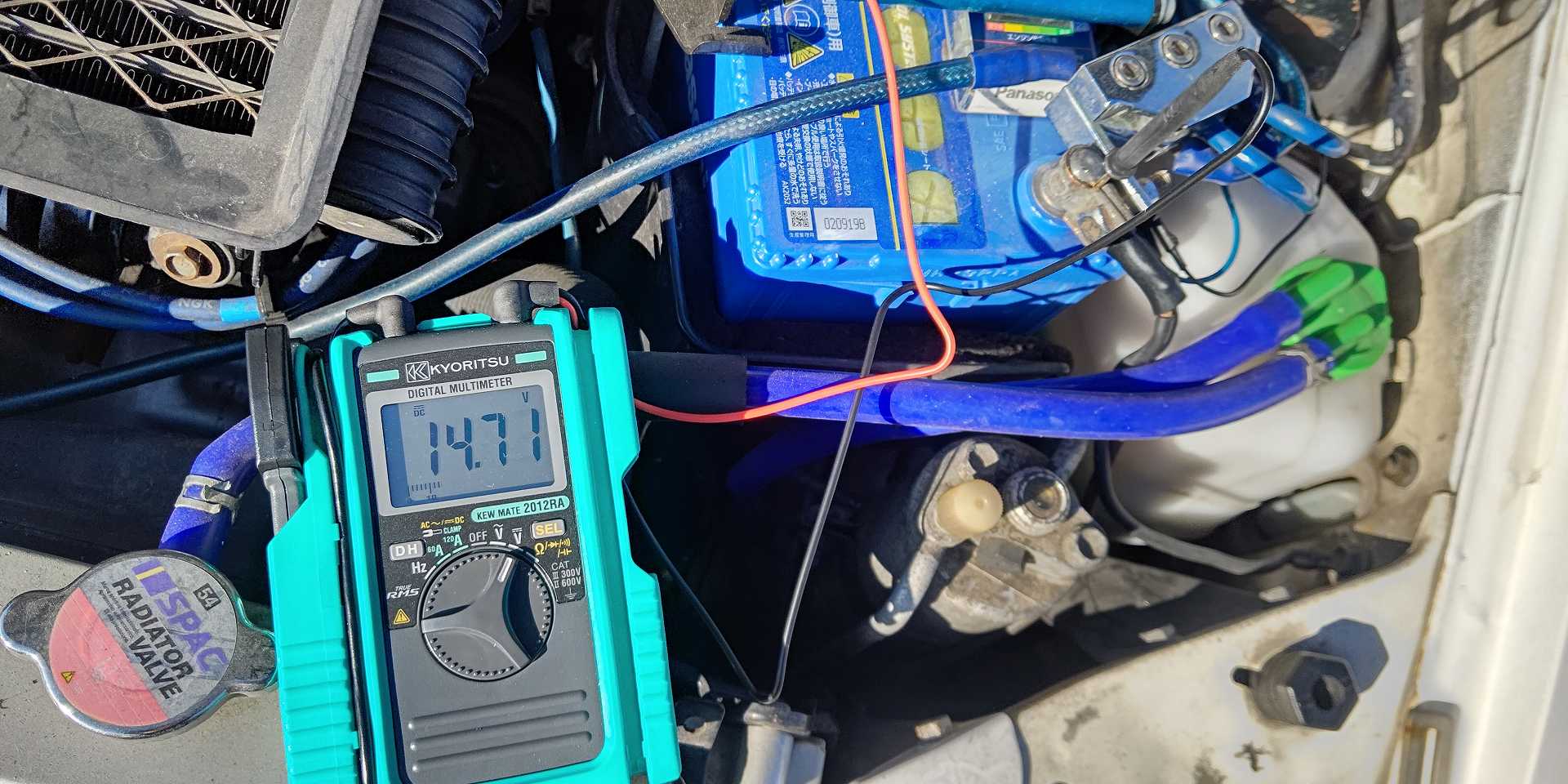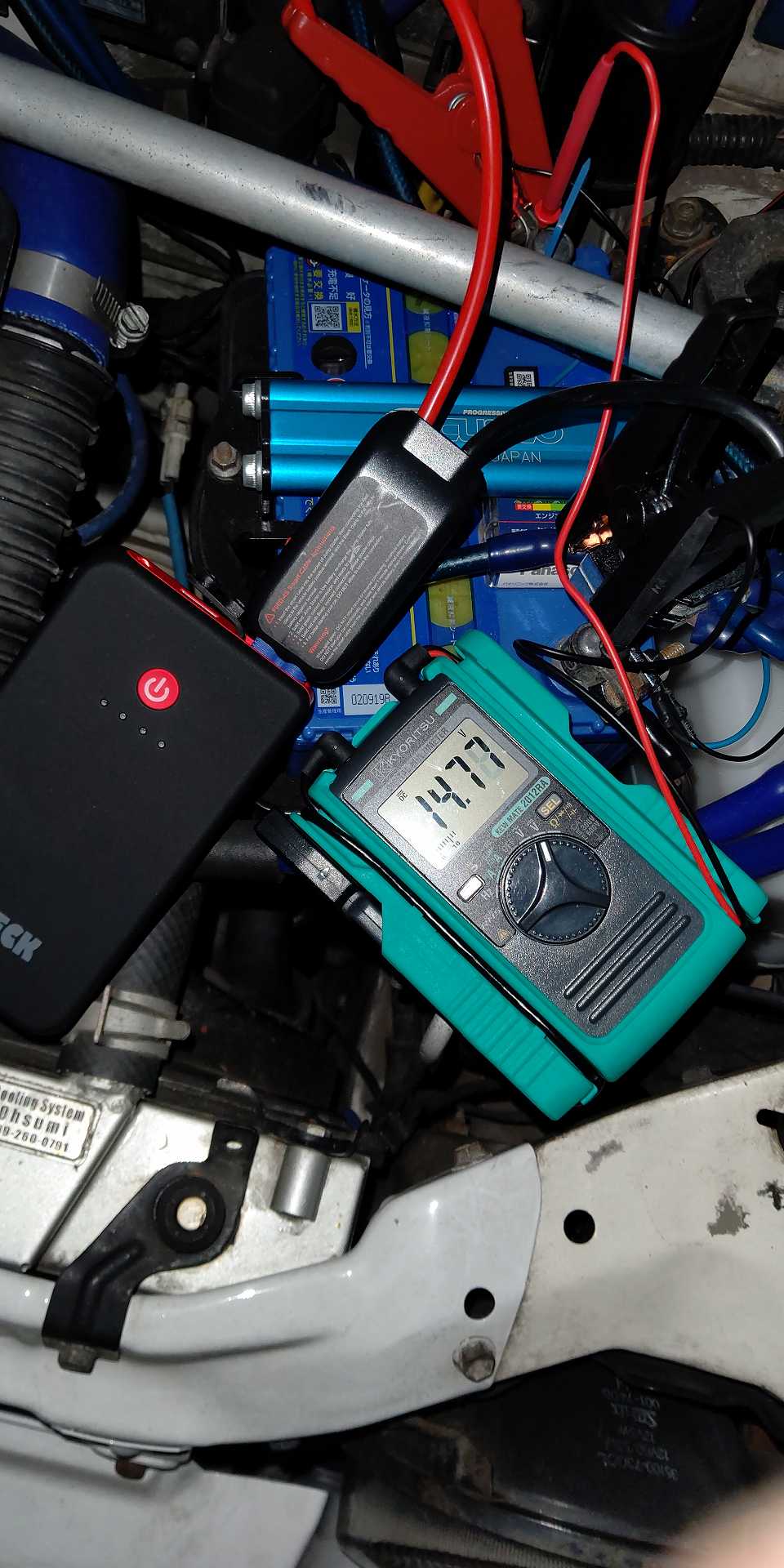 エンジンかけた状態で、ジャンプスターター外して14.71V