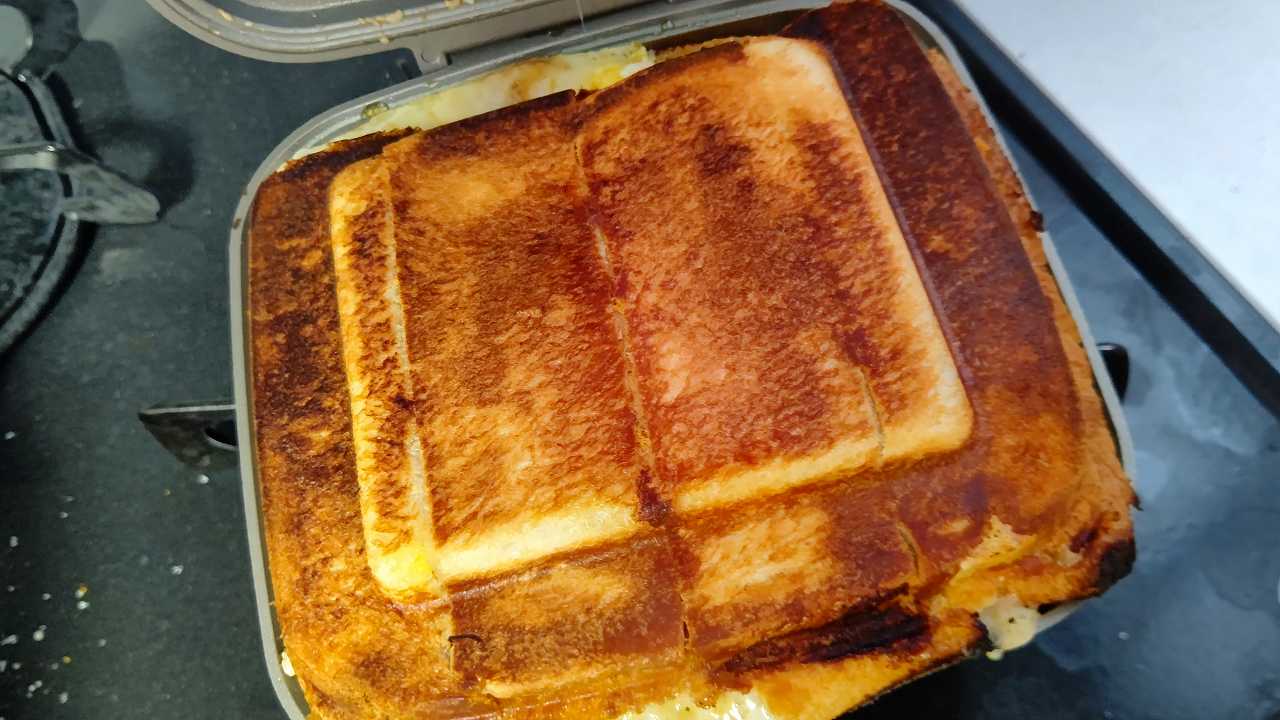 玉子つぶれないかと、固くしたのだけど、さすがにチーズが溶けてはみ出た。。。