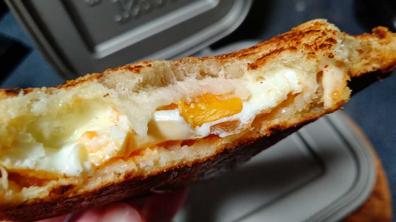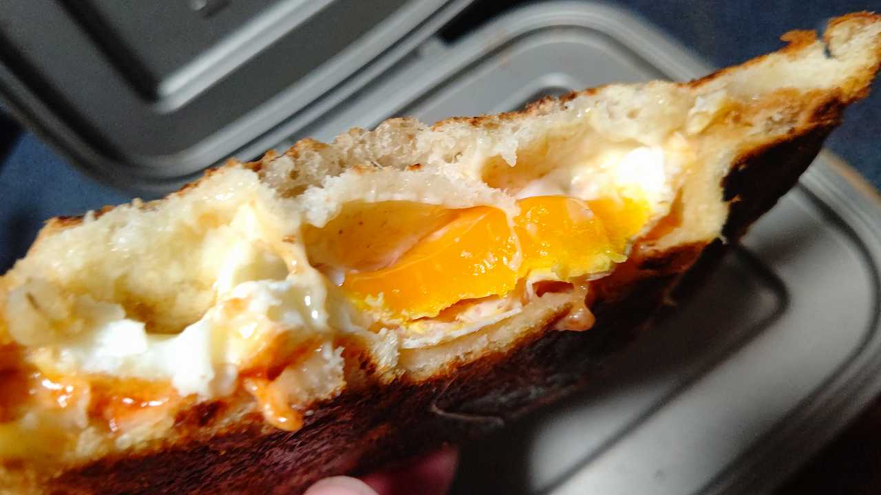 チーズ2枚で目玉焼き挟んで、ケチャップと、激辛どろソースを少し