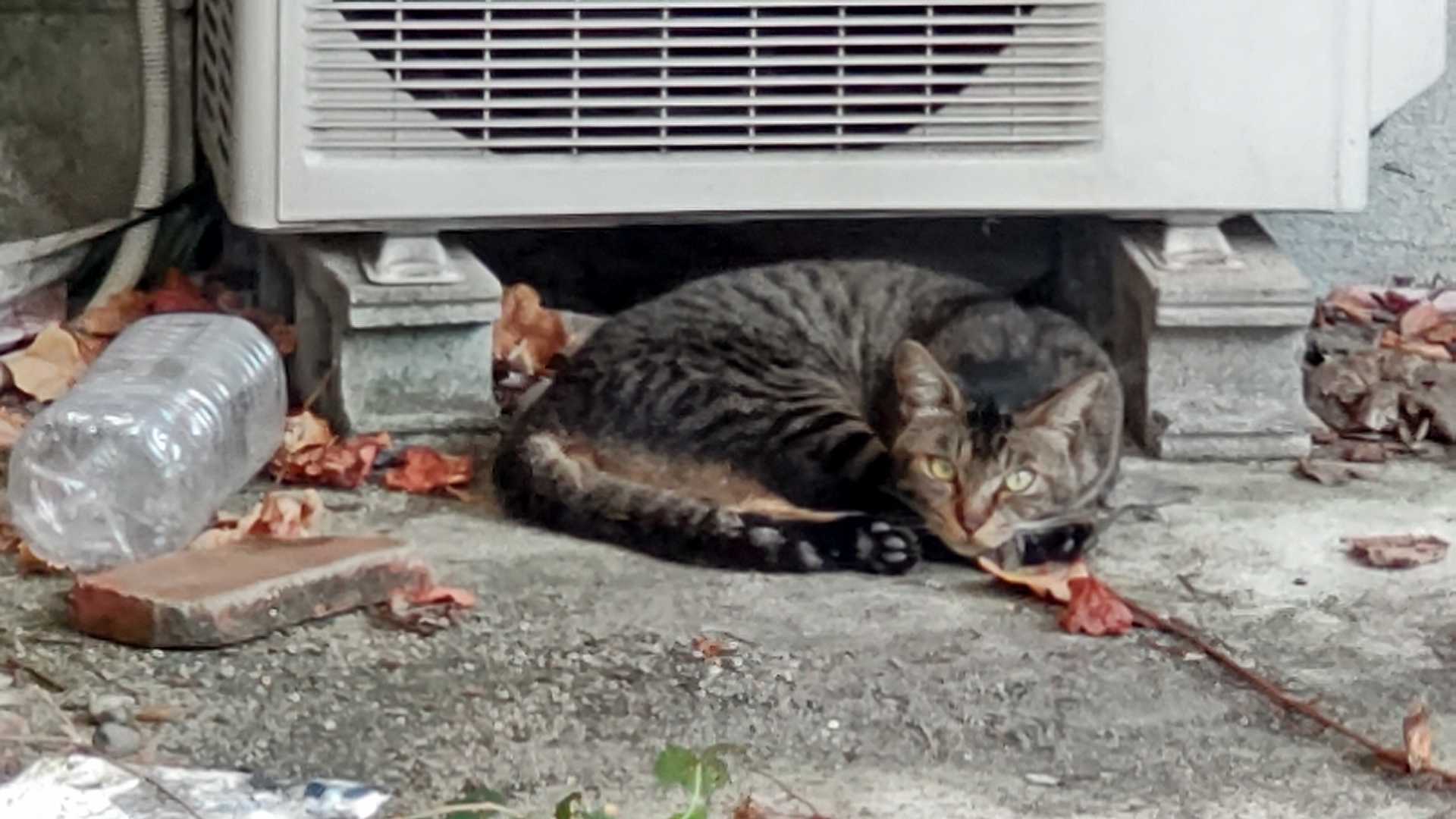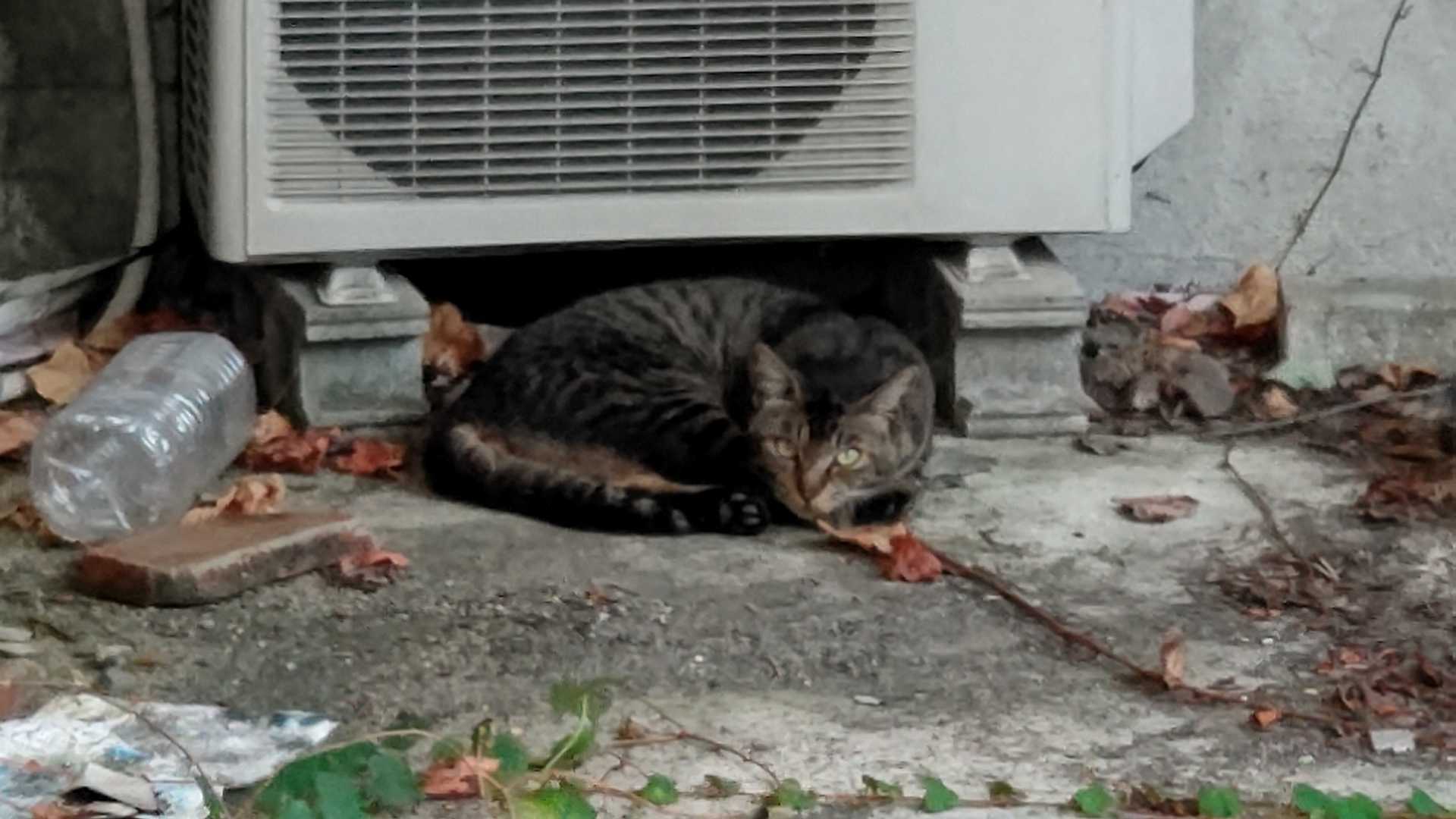 プラゴミ捨てに行ったら、キジトラが