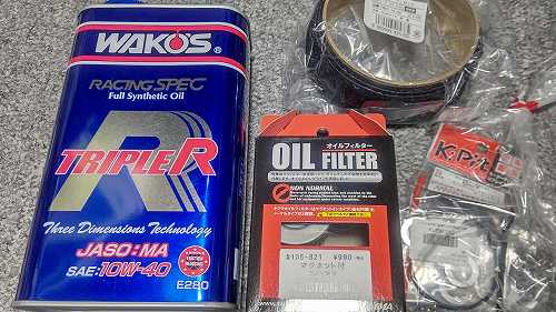 最初は、オイルとワッシャー、フィルター、Oリングで3千円超えてて送料無料だったけど、10% Offしたら、送料追加されて料金あがったので、マジックテープを追加。。。