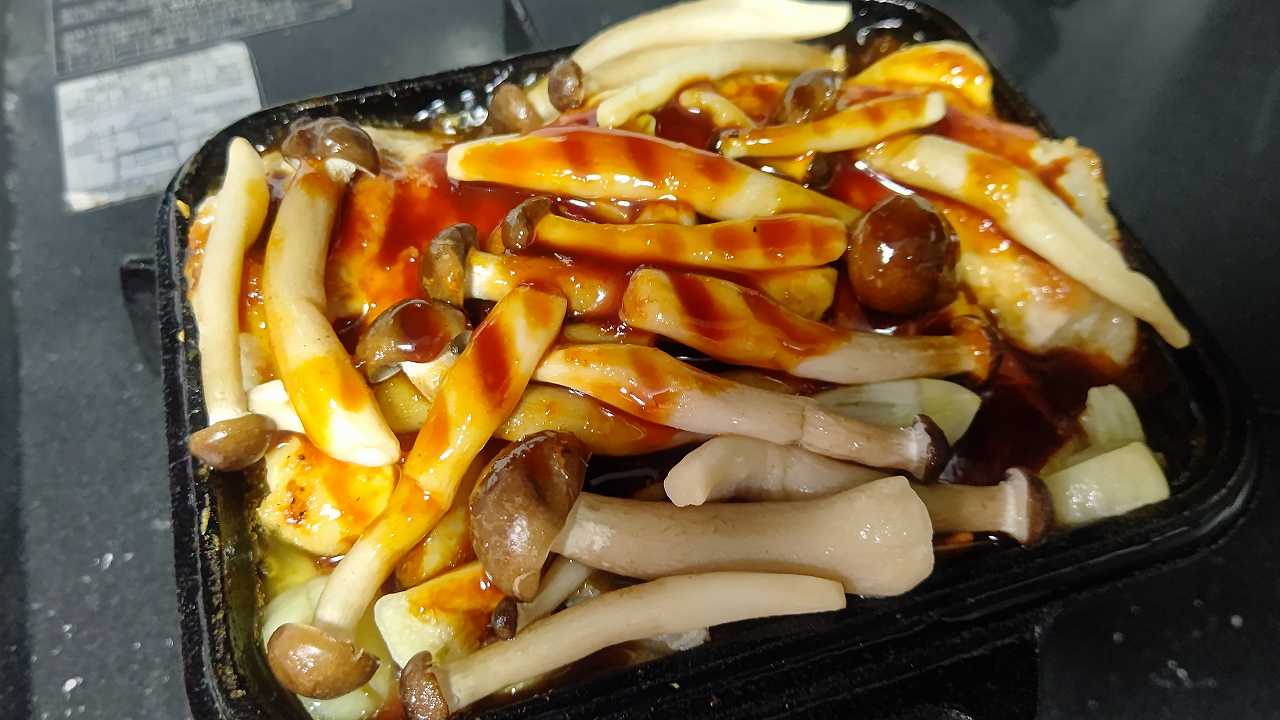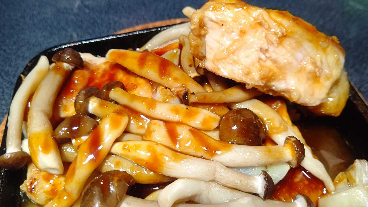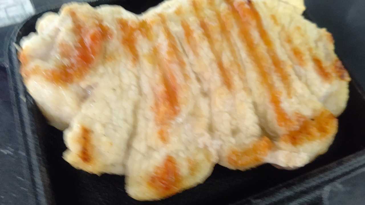 火が通ってから、トンテキソース入れて、余熱でグツグツさせて、いただきました。