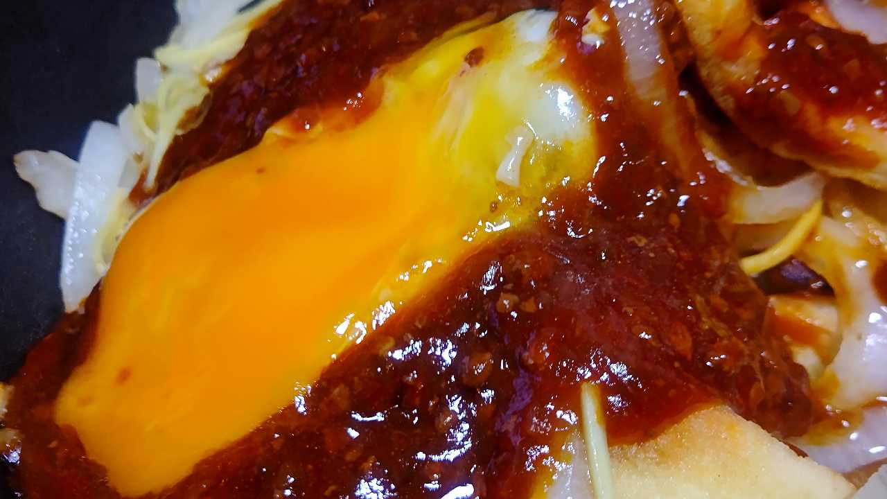 玉子と、ママーのプロテイスト ボロネーゼソースかけて焼いていただきました。