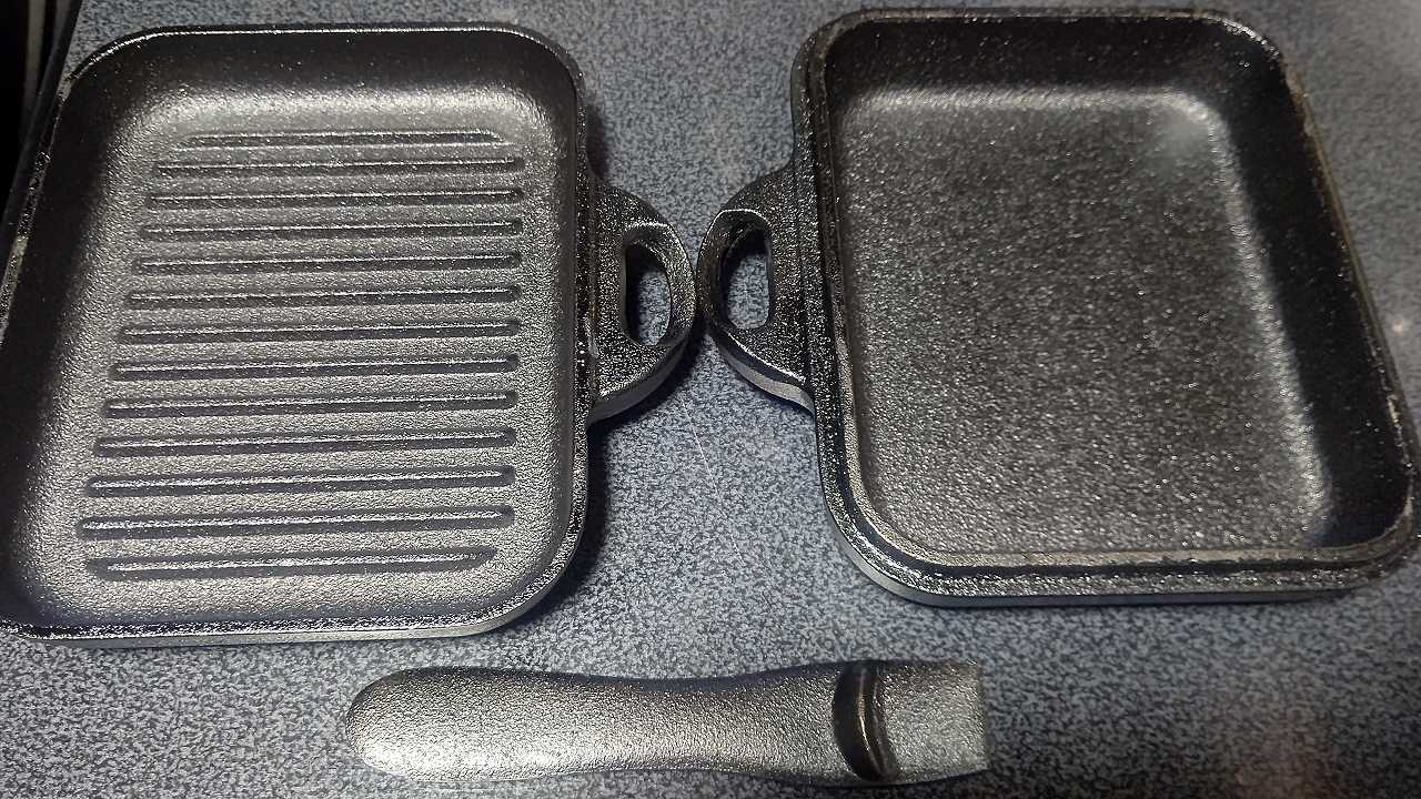 内側にはグリル用の溝付き。焼く、炒めるはもちろん2つ合わせてオーブンとしても使用可能です。