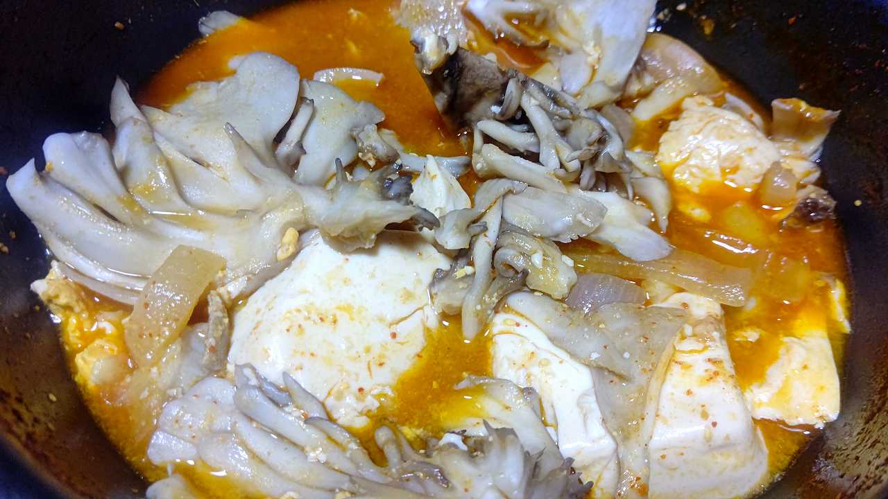 まいたけと、ホルモン買ってきて、スンドゥブに入れました。。。