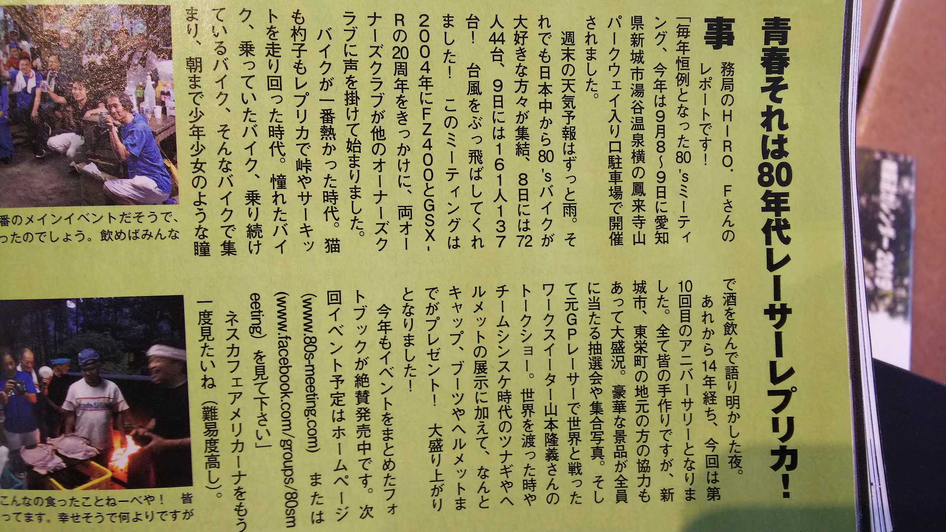 5年前の11月22日は伊賀オフミ。10年前は、80's大忘年会二日目!11年前、もっちゃんで感動!12年前、13年前は神農祭。16年前は、鳥羽ノスタルジックカーミーティング。17年前は、ちぱるちゃん、週刊バイクTVに