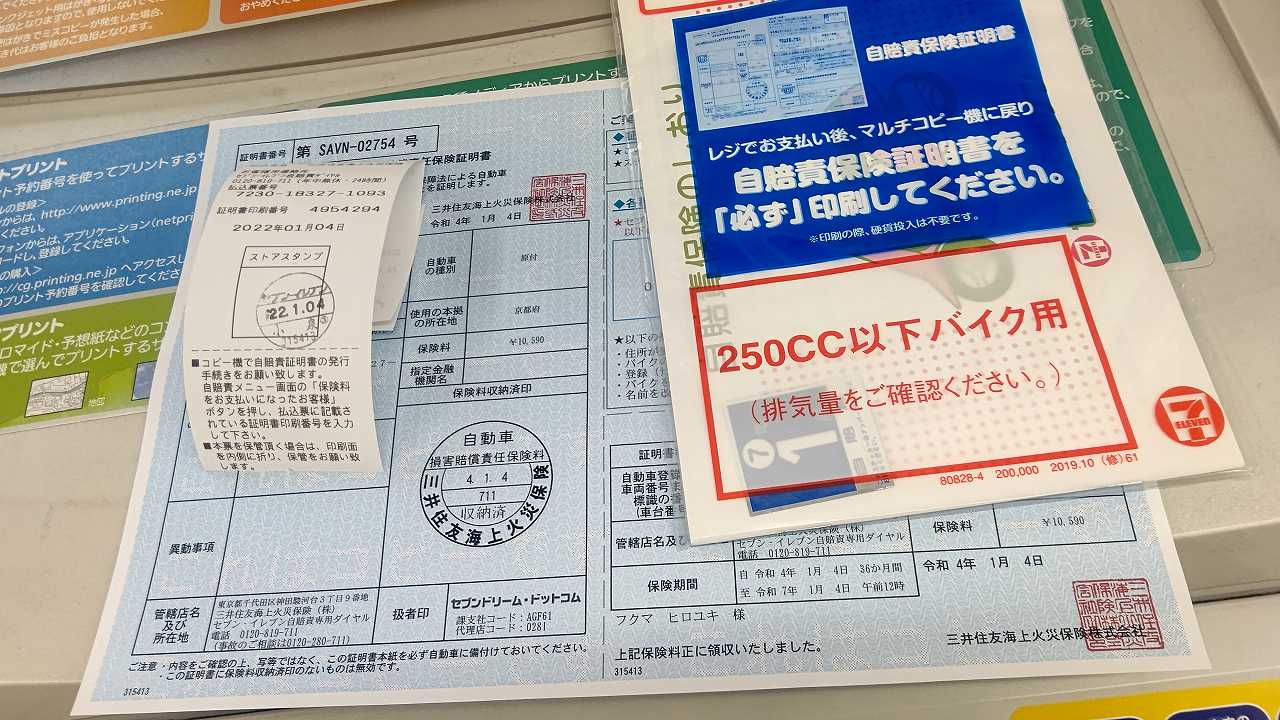 V100の自賠責保険、セブンイレブンで三年分入って、、