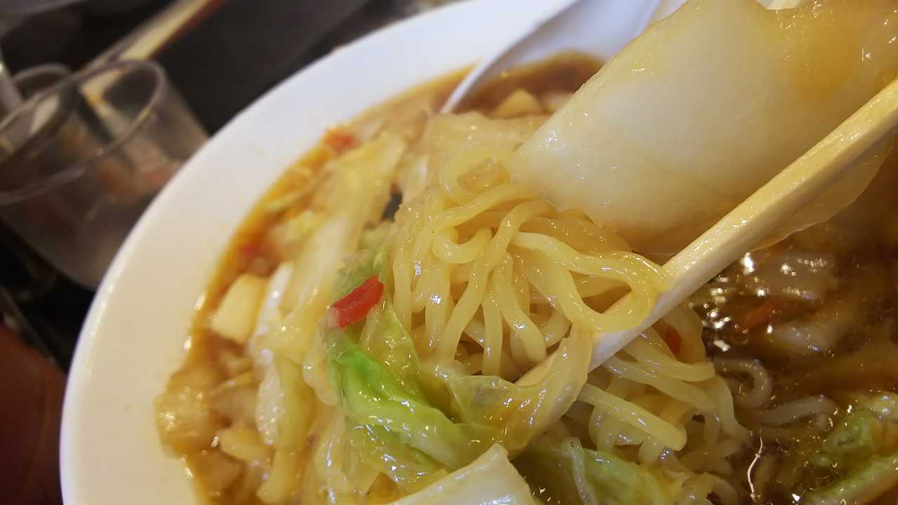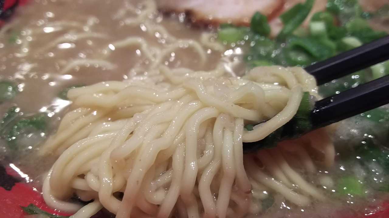 麺は、中太ってほど太くなくて、縮れているけど、細めですね。