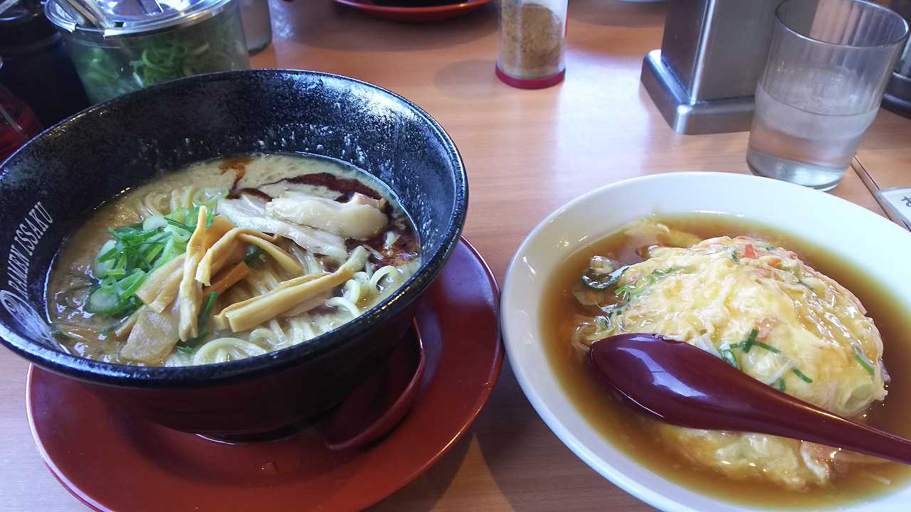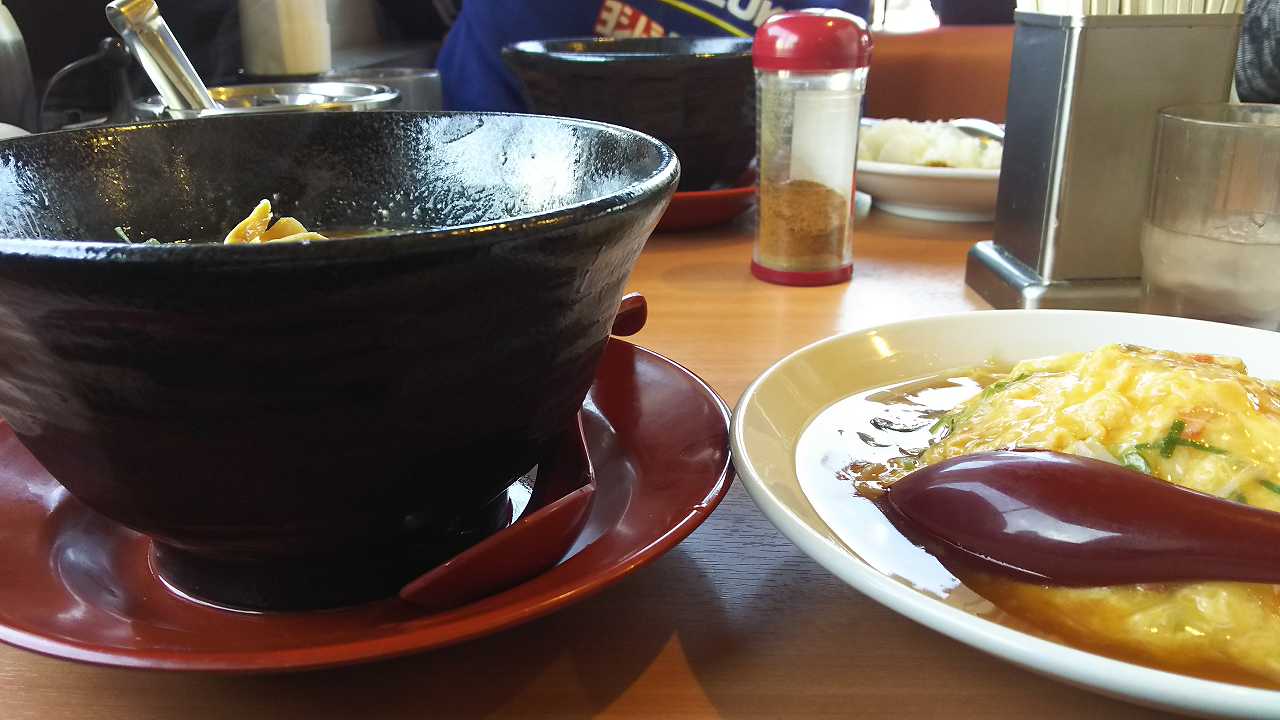 北浜 ラーメンマン しょうゆラーメンネギ大盛り食べてます