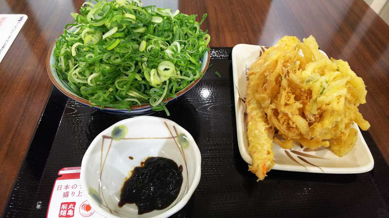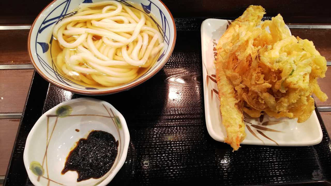 丸亀製麺 イオンモール店 かけうどん カニカマ天 野菜天