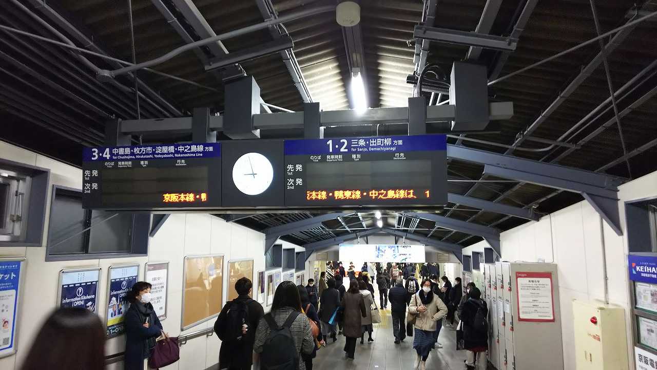丹波橋駅は、普通と特急が、ずっと止まった状態で、普通は、みんな座ってスマフォいじってるのだが