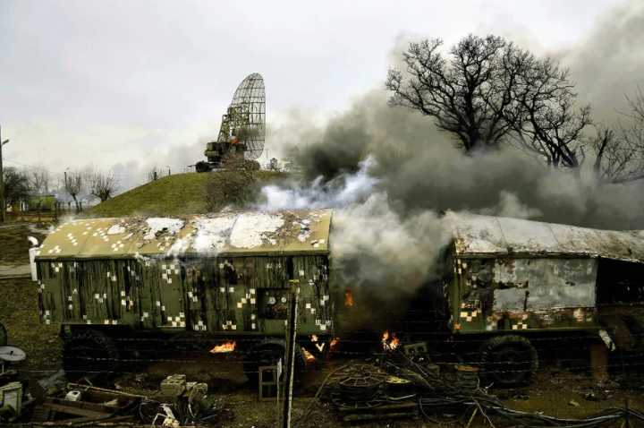 同高官は、露軍による最初の攻撃で、陸海空から巡航ミサイルなど約100発が発射されたとも指摘。約75機の爆撃機などを使い、主に軍事基地と防空拠点に爆撃を加えた後、陸軍が国境を越えてウクライナに移動したとの分析を示した。