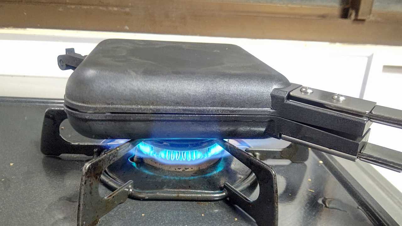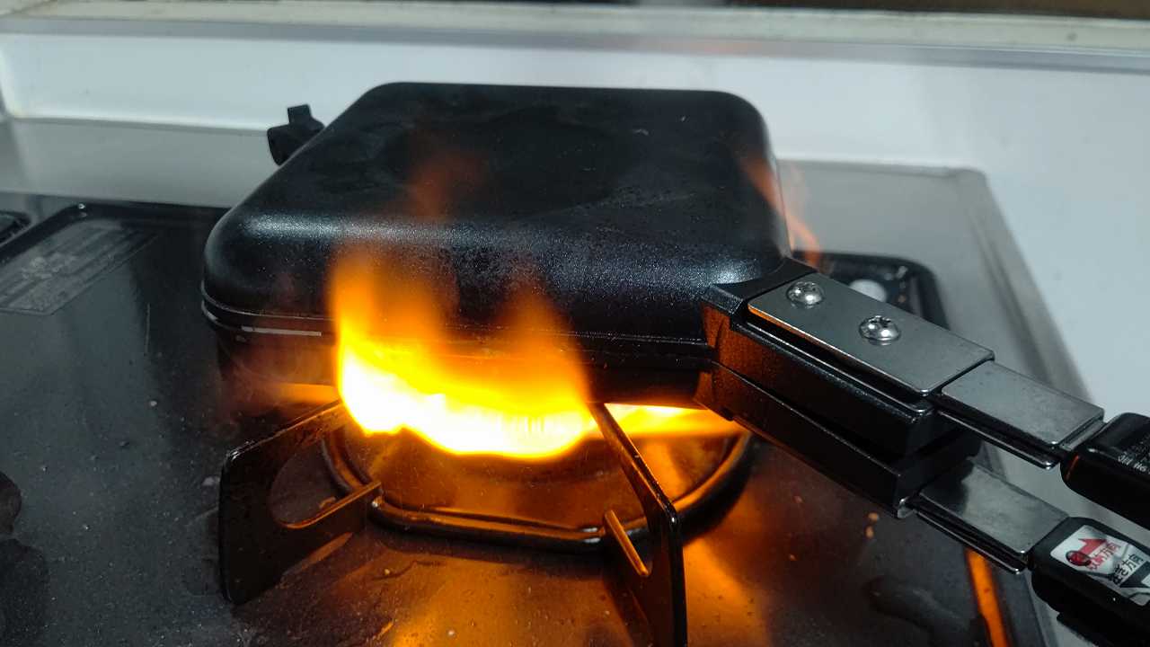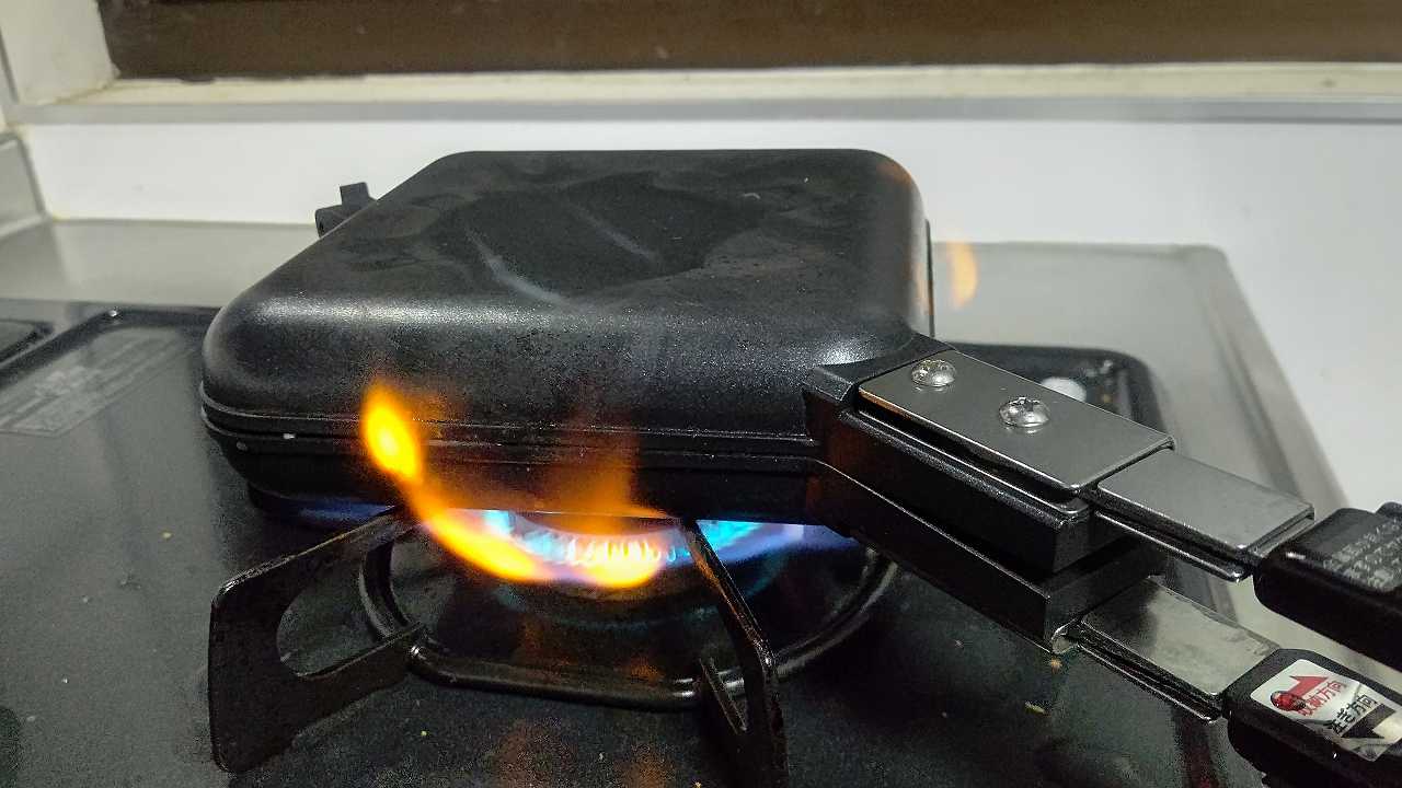 2022/02/17 和平フレイズ キャンプラス 折りたためるホットサンドメーカー でラムーのサンドイッチ焼きました