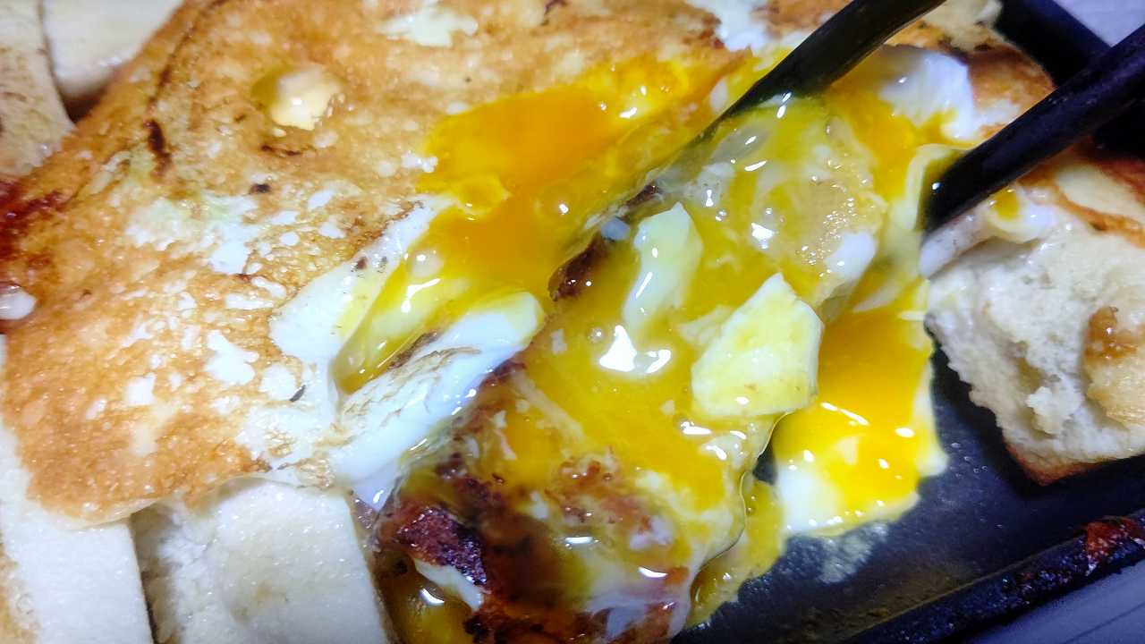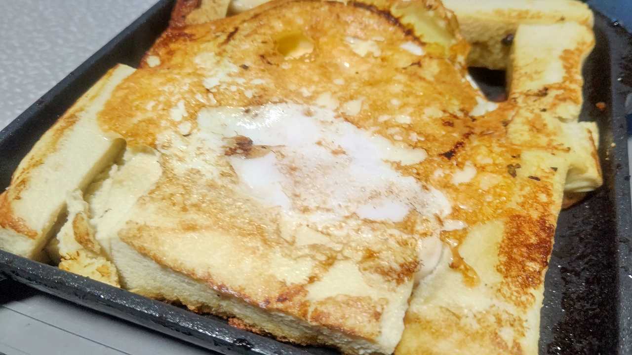 2022/02/17 和平フレイズ キャンプラス 折りたためるホットサンドメーカー で高野豆腐のオリーブオイルケチャップ焼きを