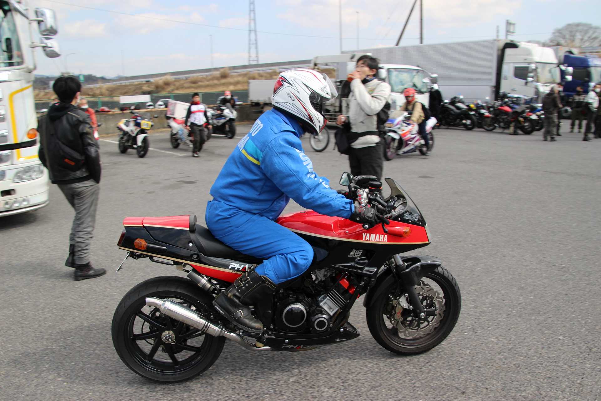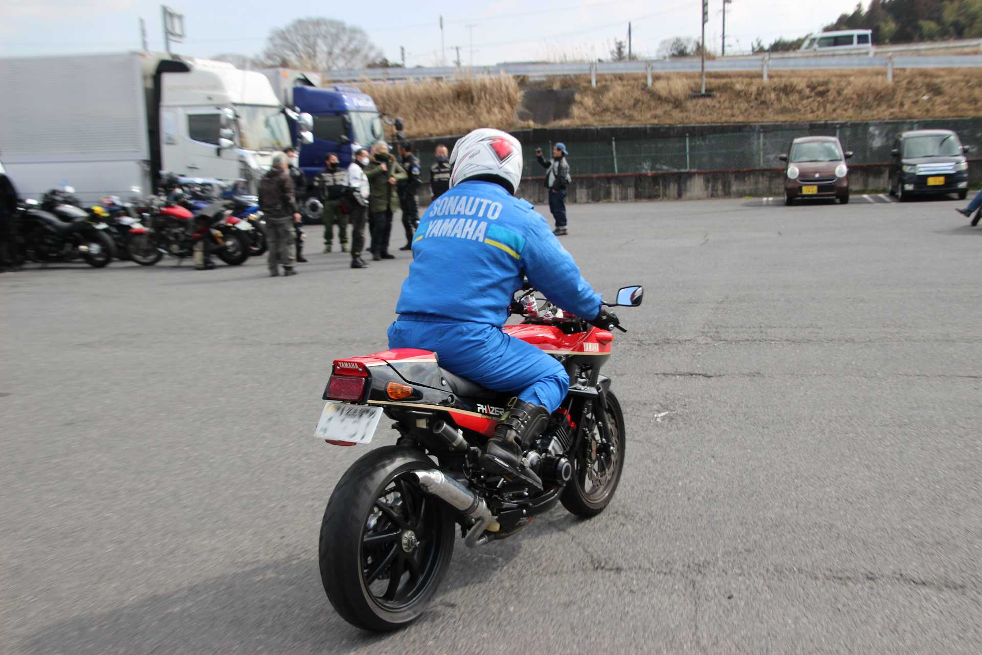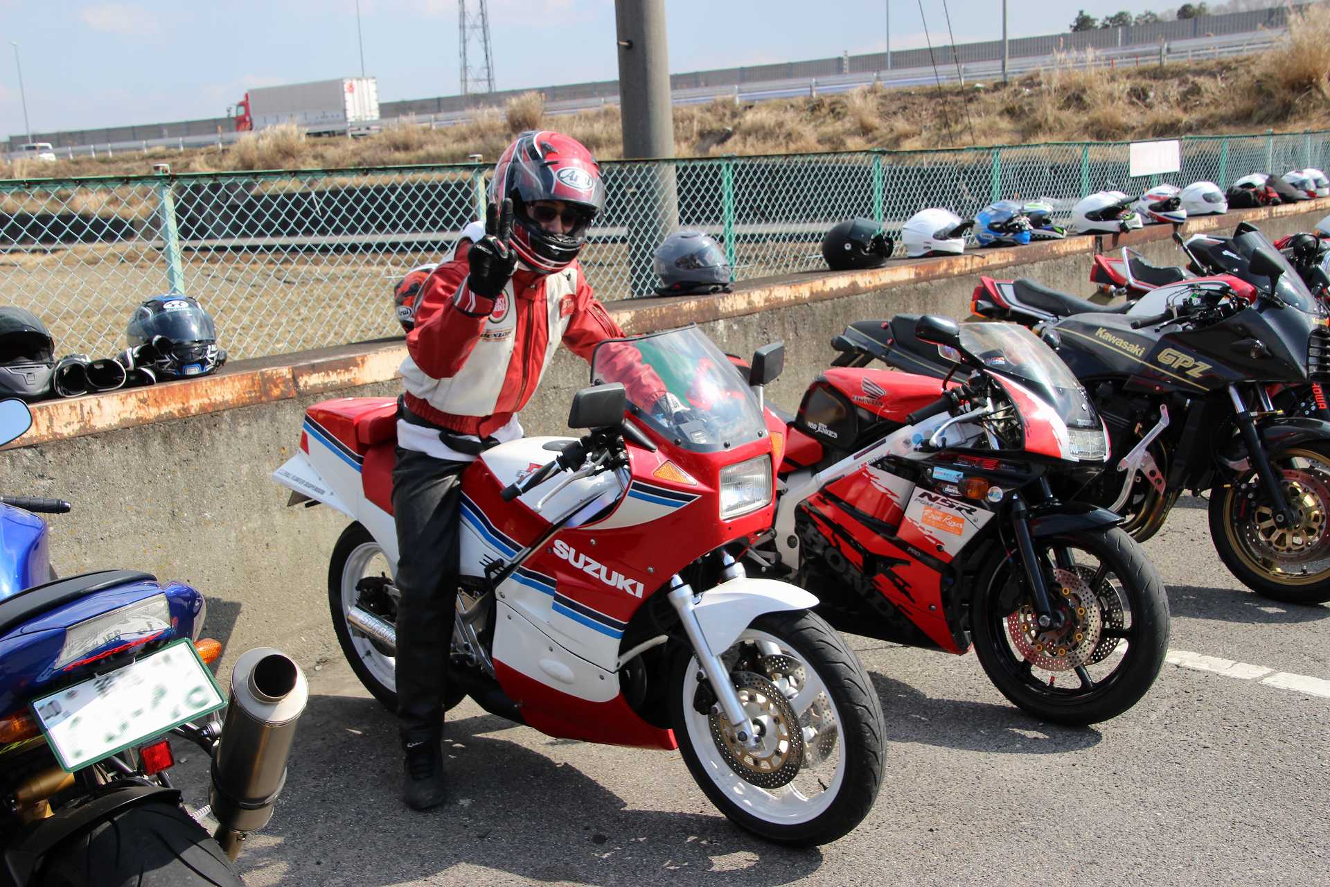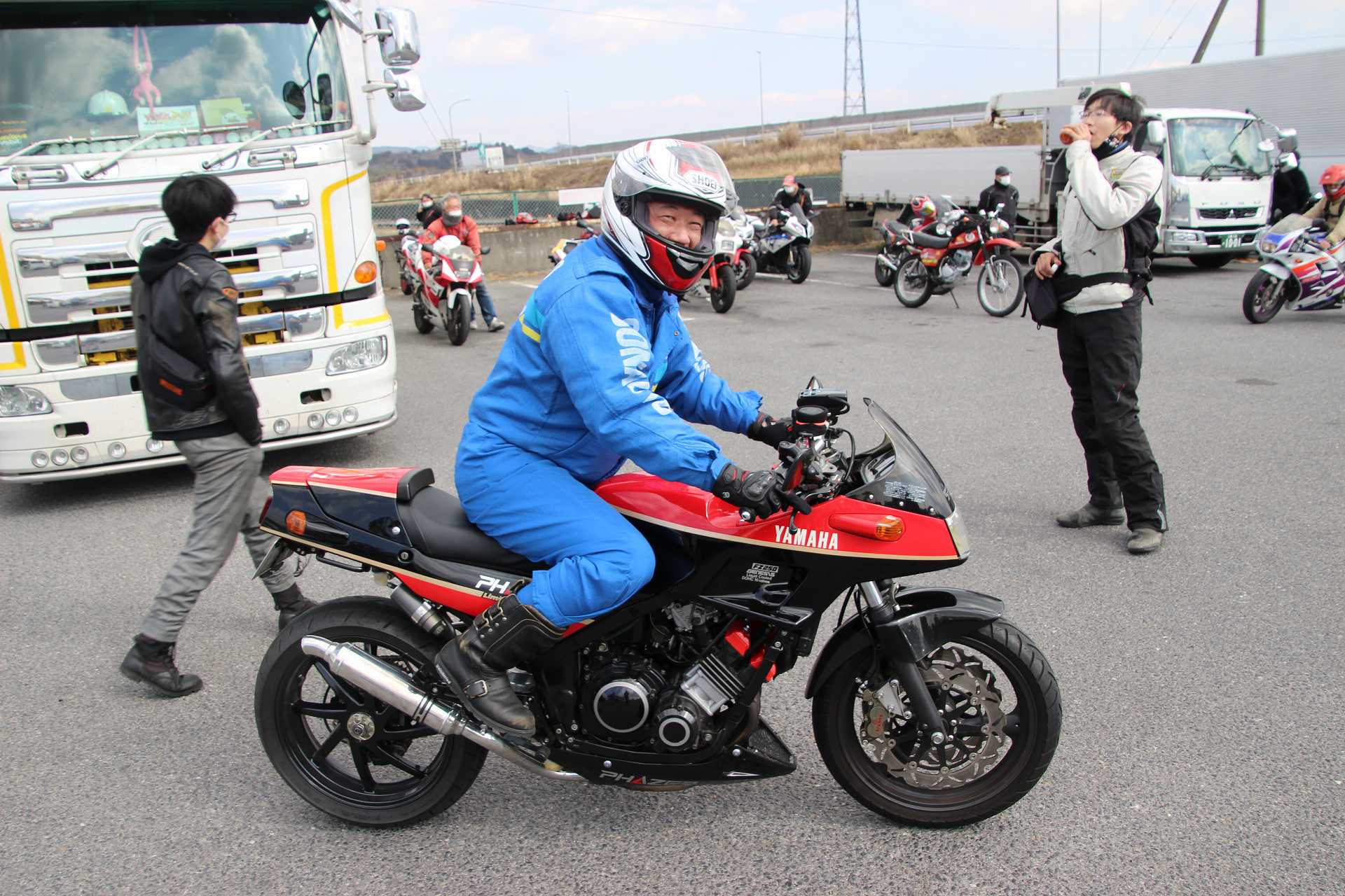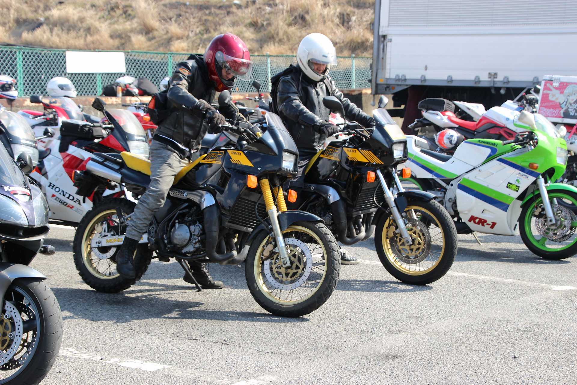 オイラもレオ君のFZR250@TECH21と並べて撮影後、撤収しました🤣