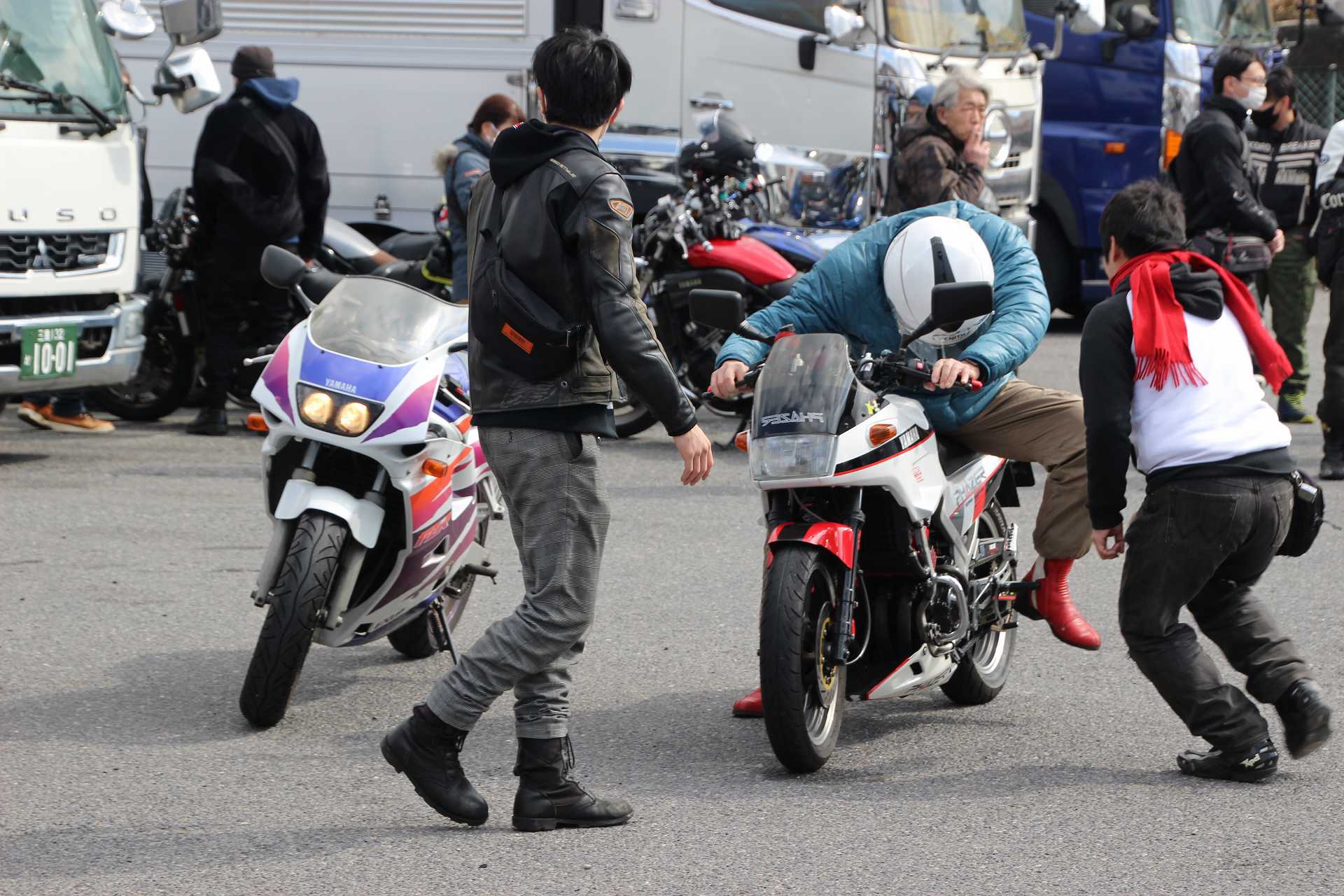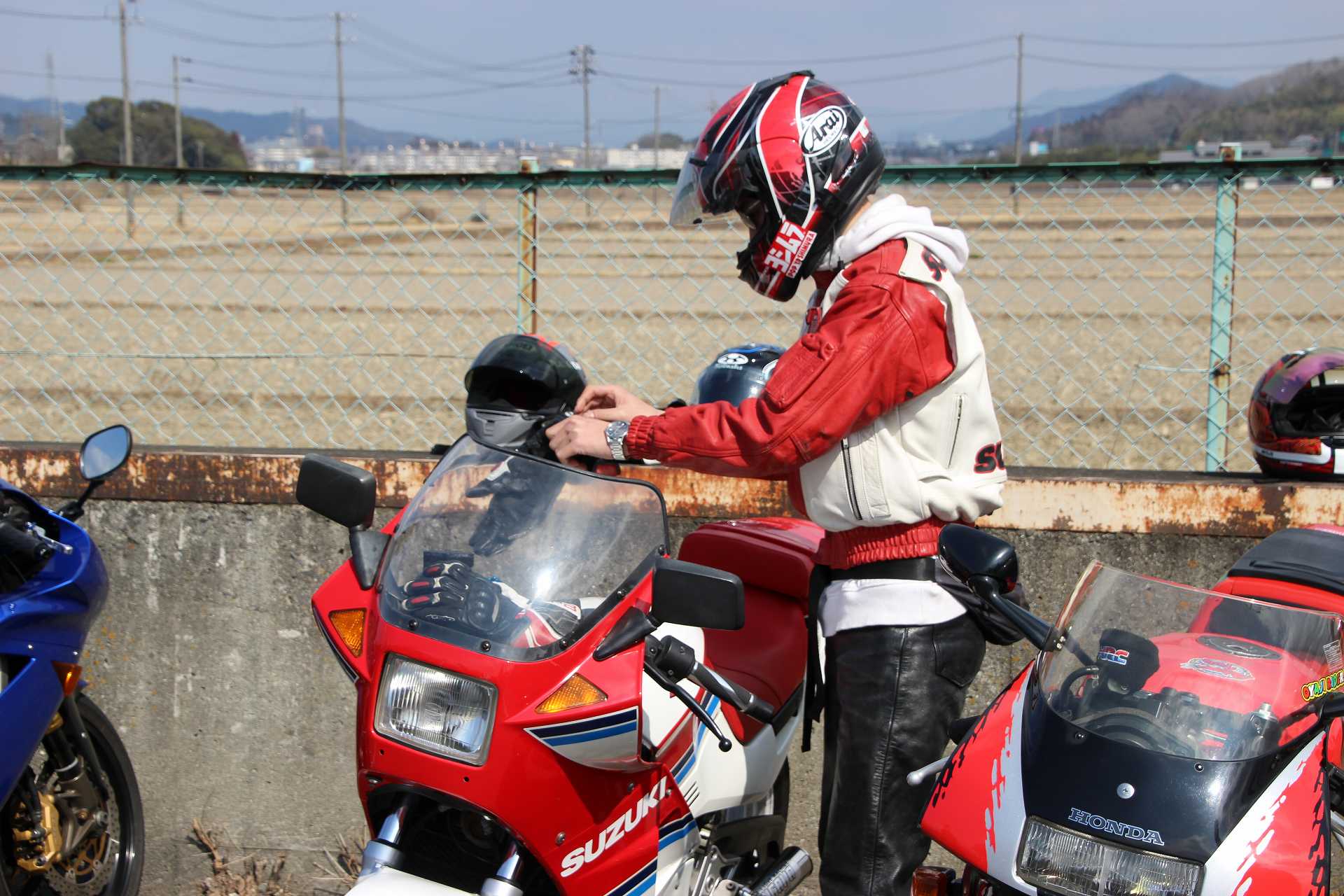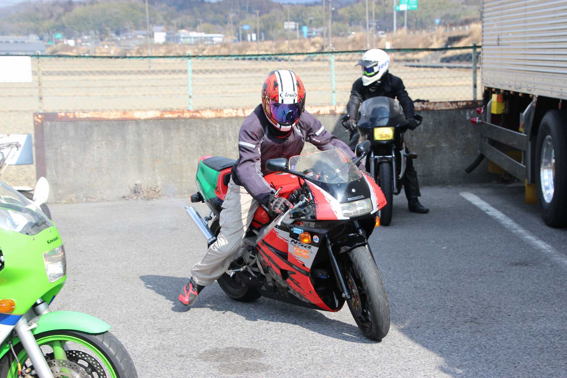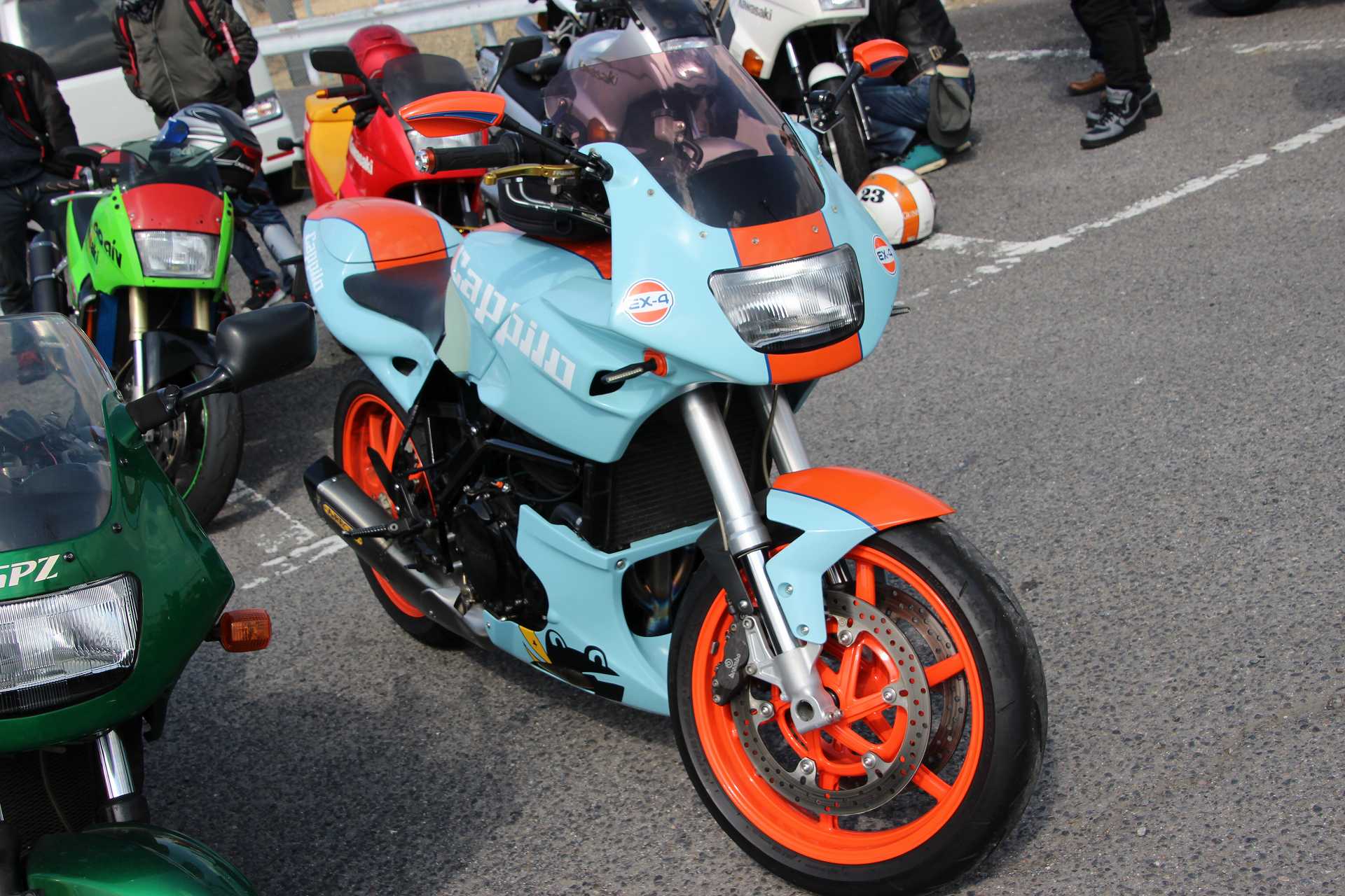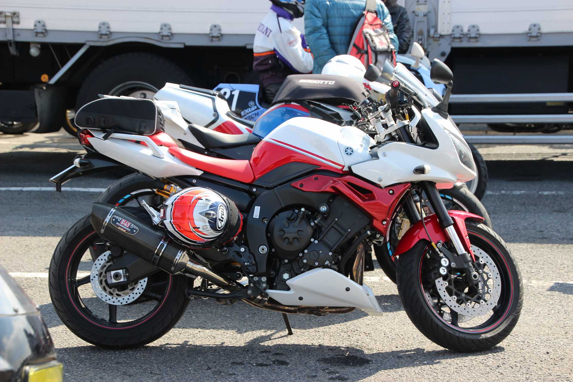 オイラもレオ君のFZR250@TECH21と並べて撮影後、撤収しました🤣