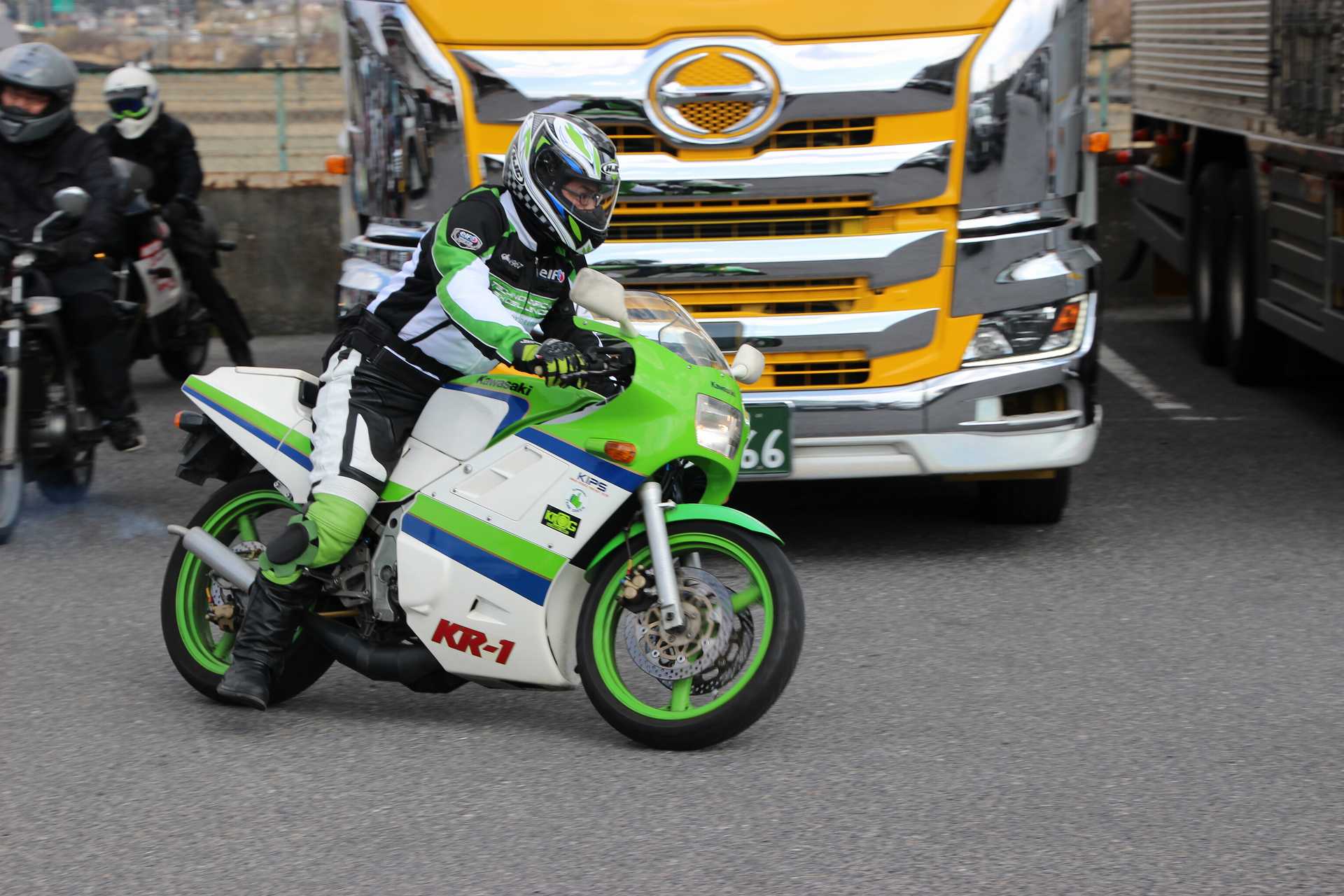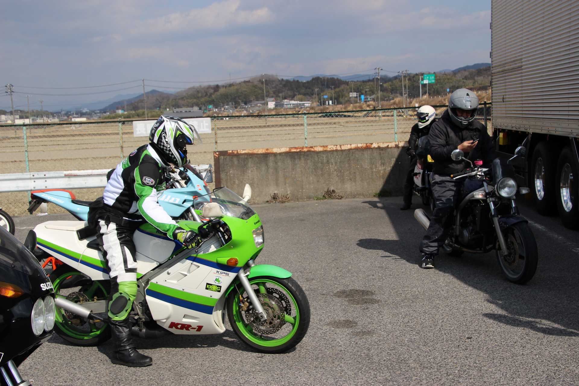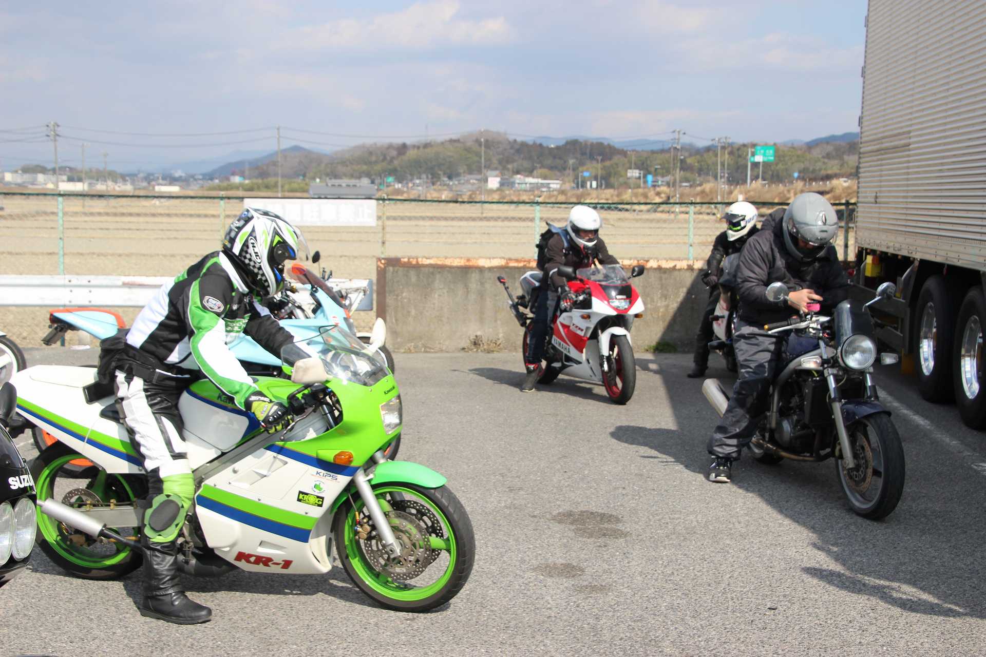 今日はKR-1、"ガンマ"、TZRで名阪上野ドライブインに行って来た
