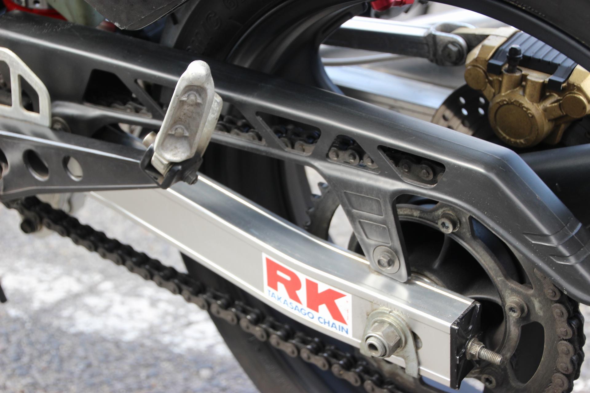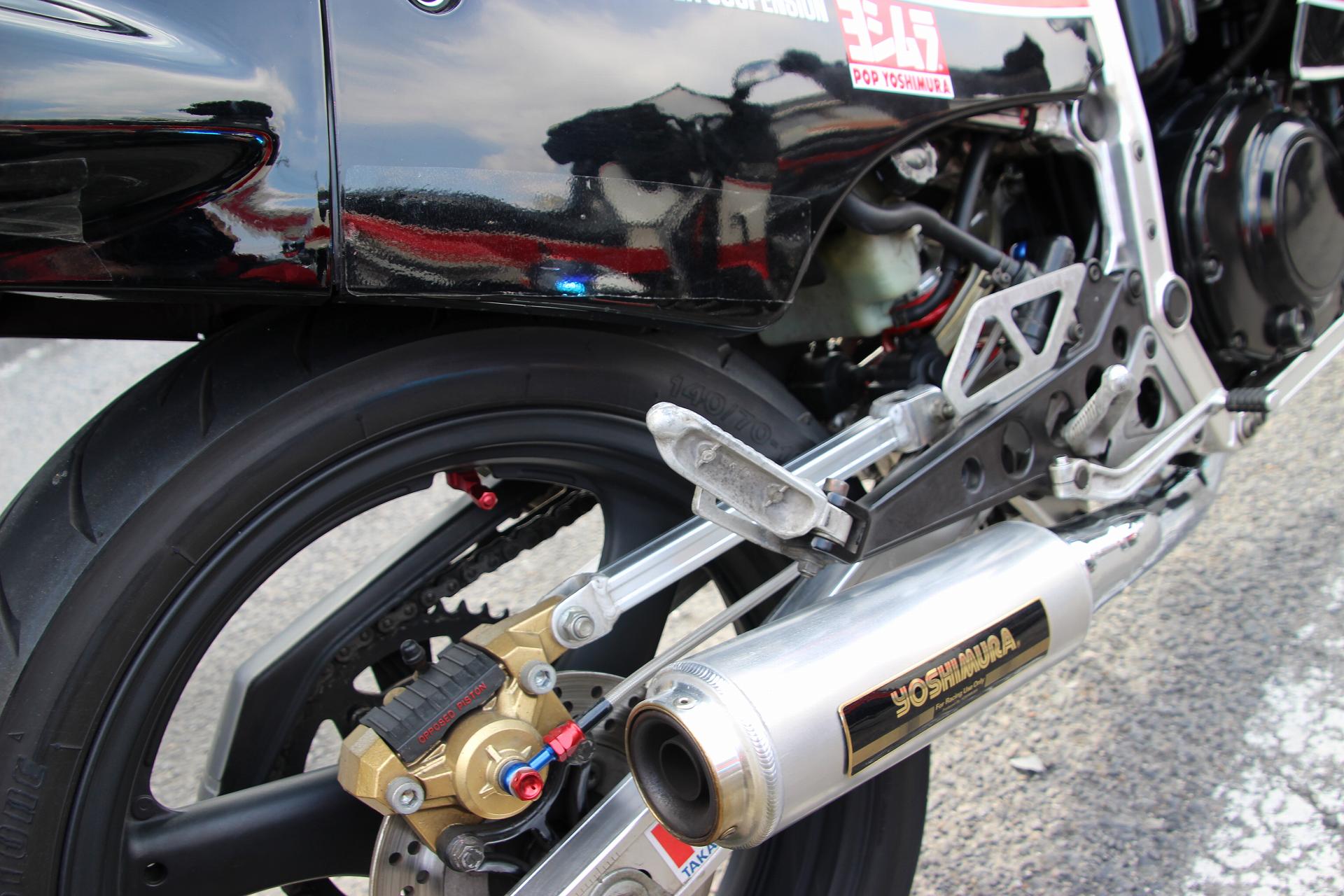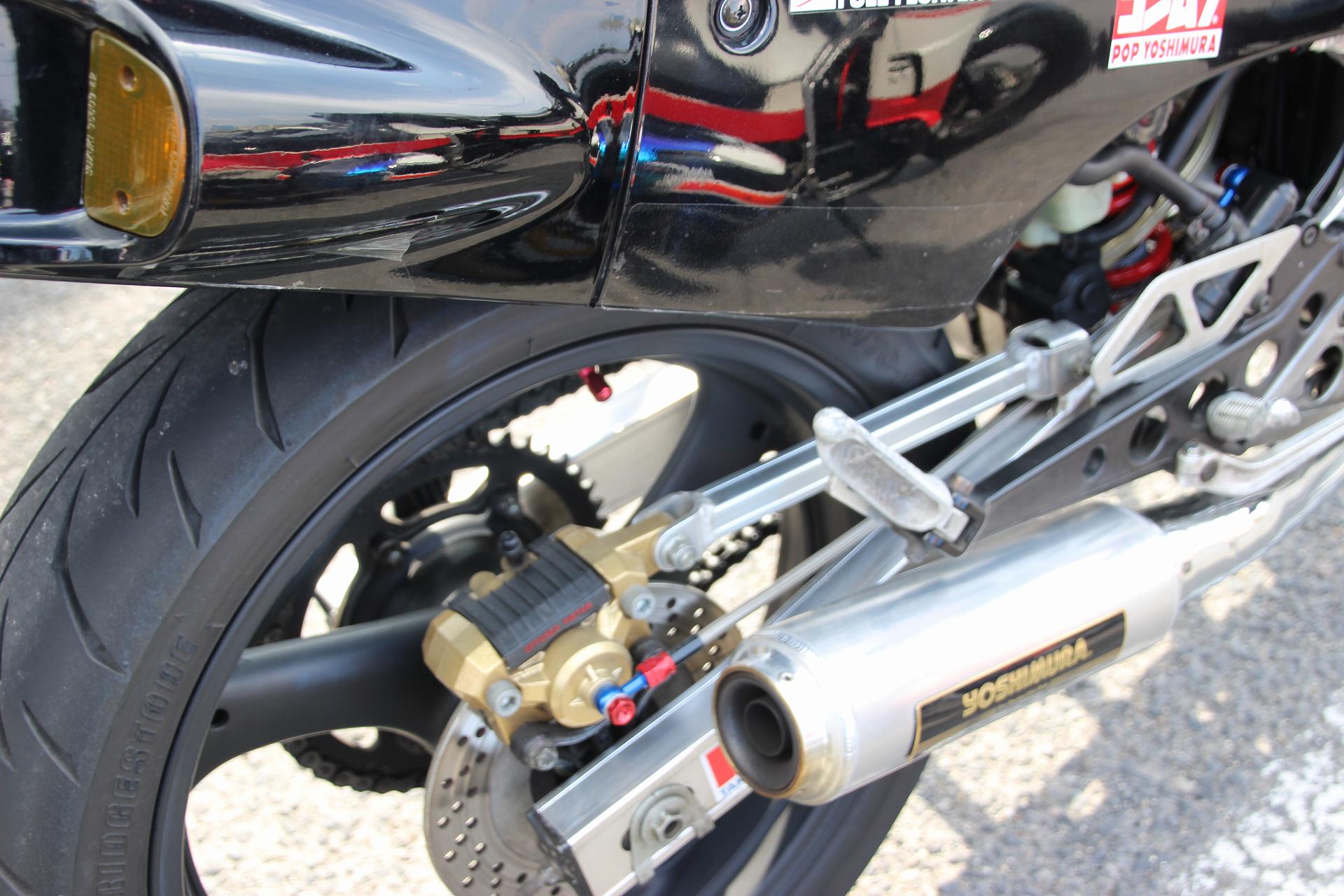 NS400R リムを変えて太いタイヤが入っています。ステアリングダンパー 付いてました。