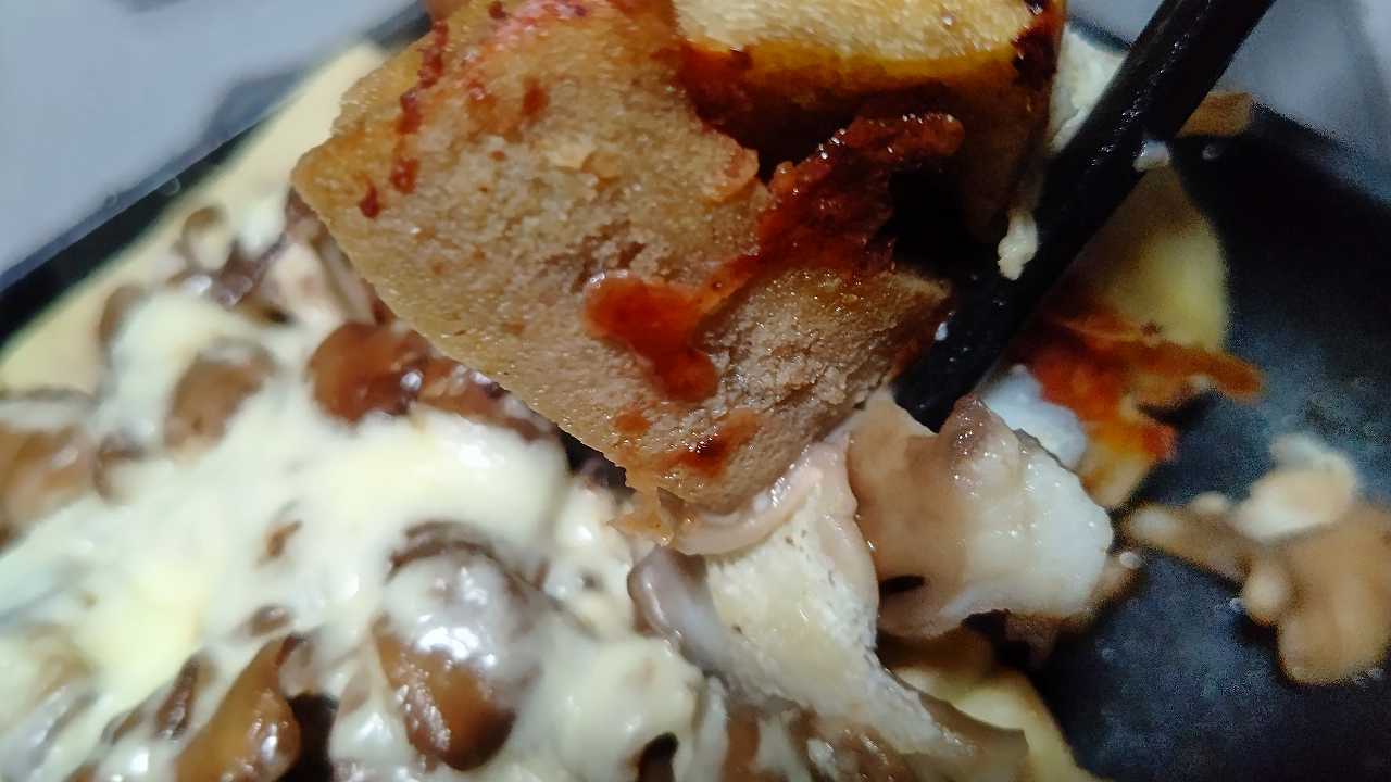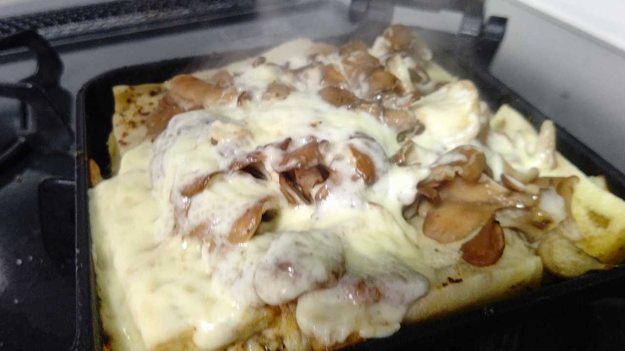 2022/02/19 和平フレイズ キャンプラス 折りたためるホットサンドメーカー で、アヒージョ油の高野豆腐のチーズ焼きを焼いてみた