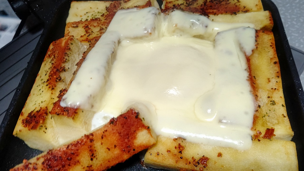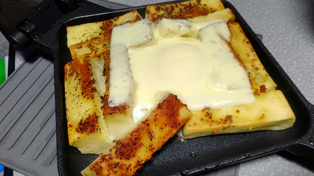 2022/02/19 和平フレイズ キャンプラス 折りたためるホットサンドメーカー で、アヒージョ油の高野豆腐のチーズ焼きを焼いてみた