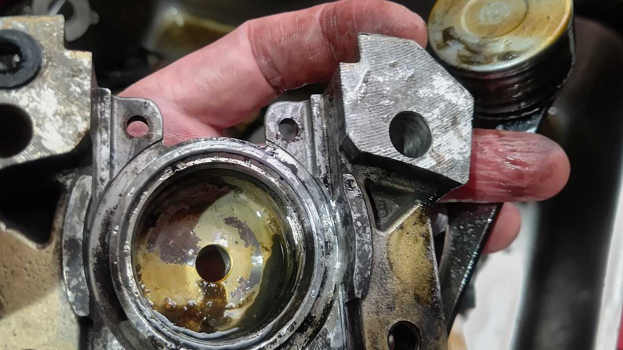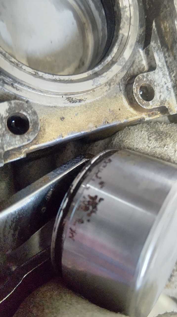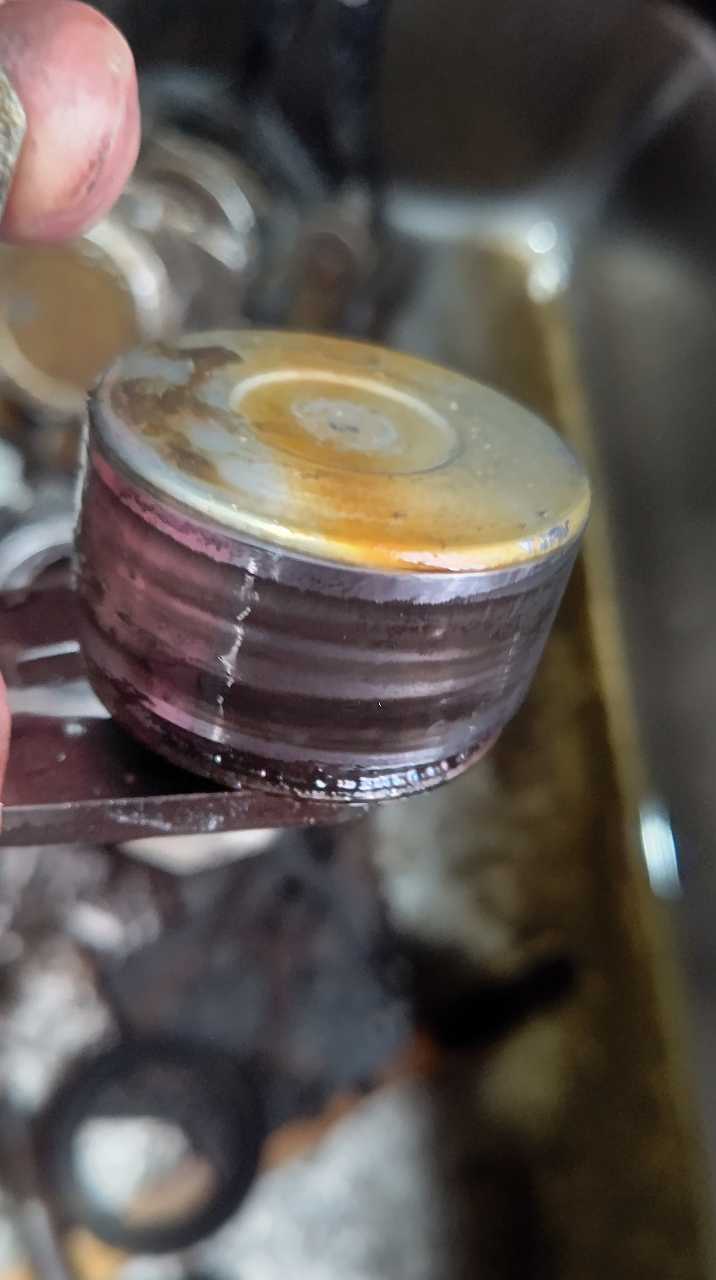 ピストンは、こっちのほうがましかな?でも錆びてます。シリンダー、白くなってるけどホーニングしたら大丈夫ですかね?シリンダーはスペアのほうが綺麗 pic.twitter.com/UuhNcGmmjv