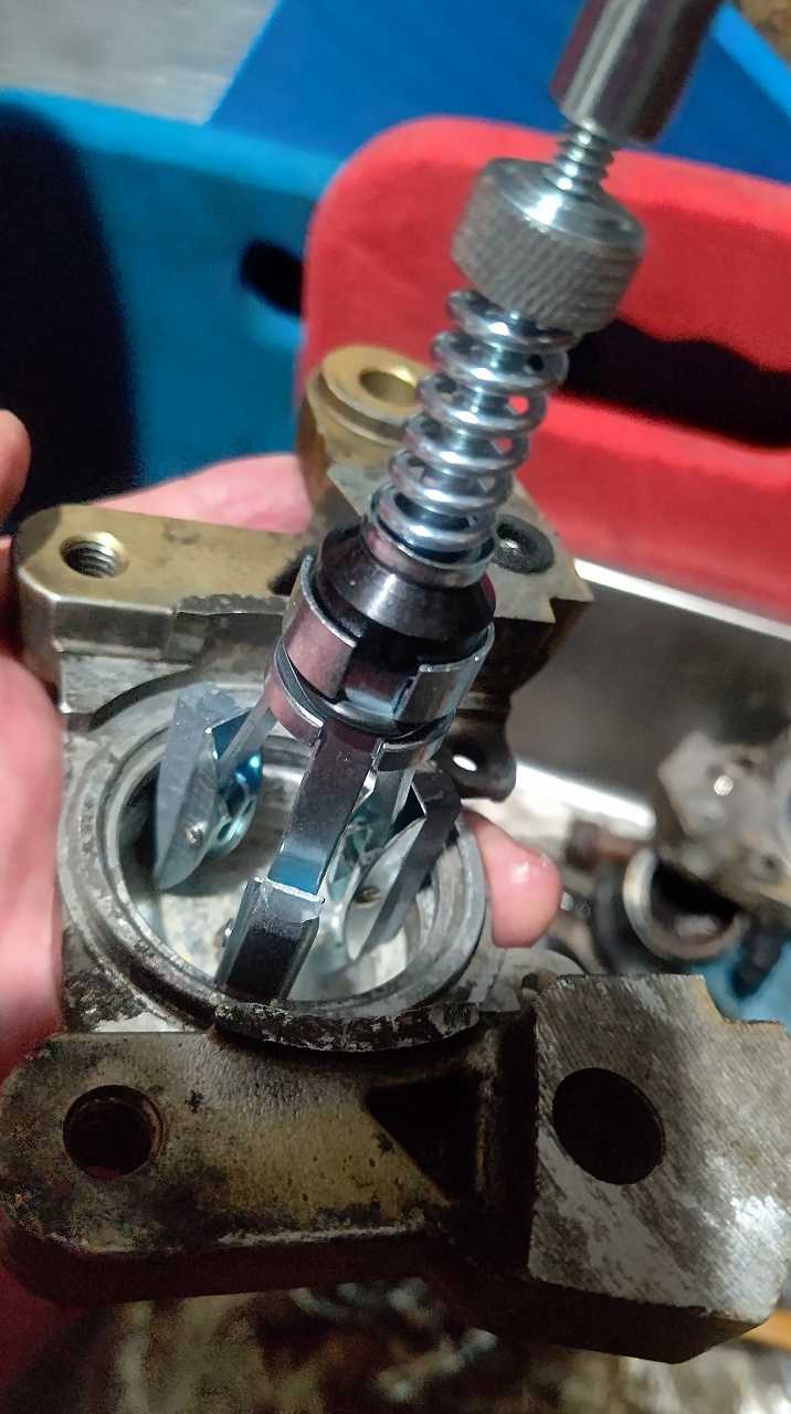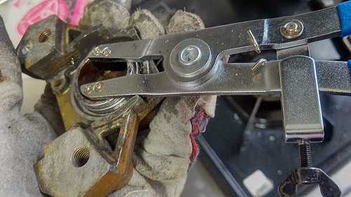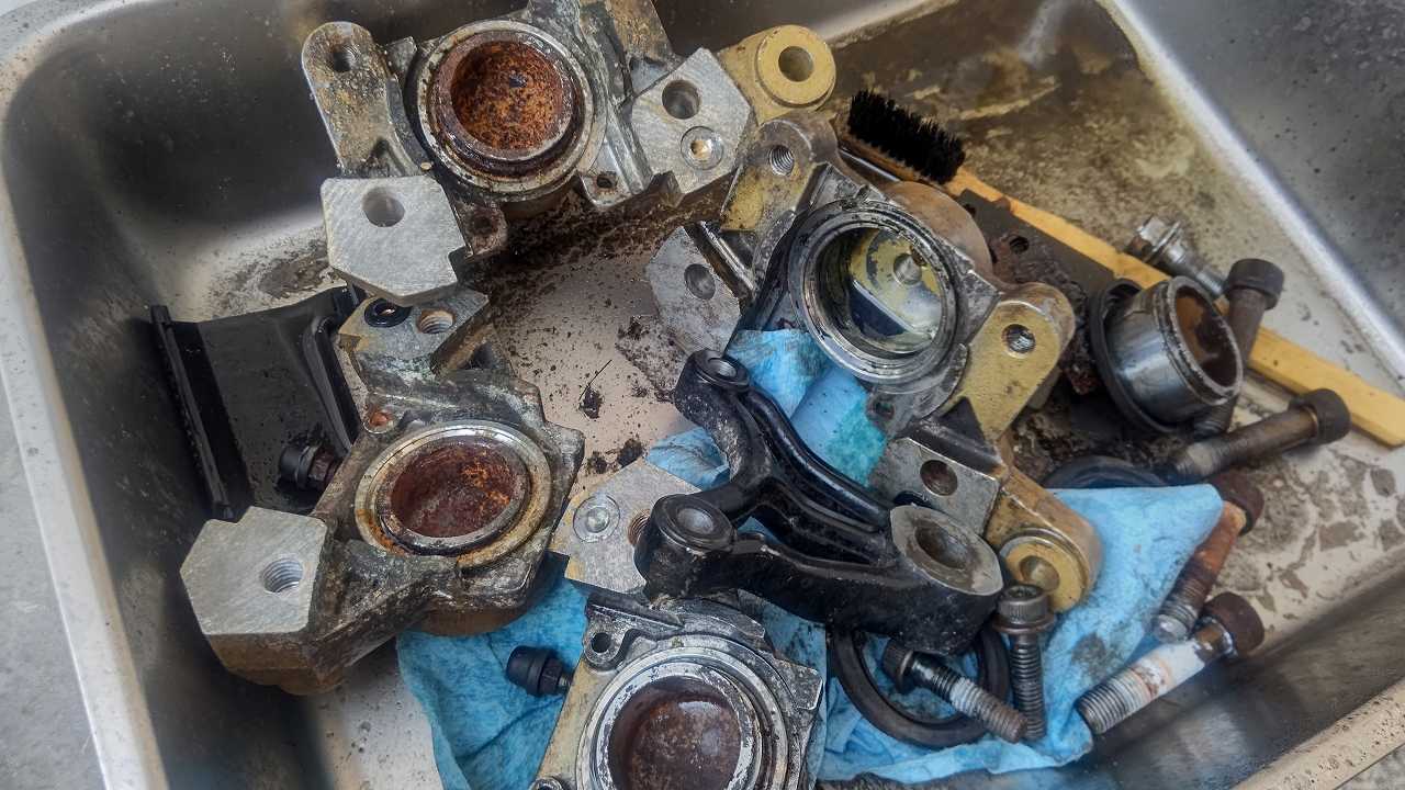 スペアのひとつ、サポートついてる、なんとか力付くでサポート外して、Γにつけて、キャリパー割って、片方はピストン抜けました。