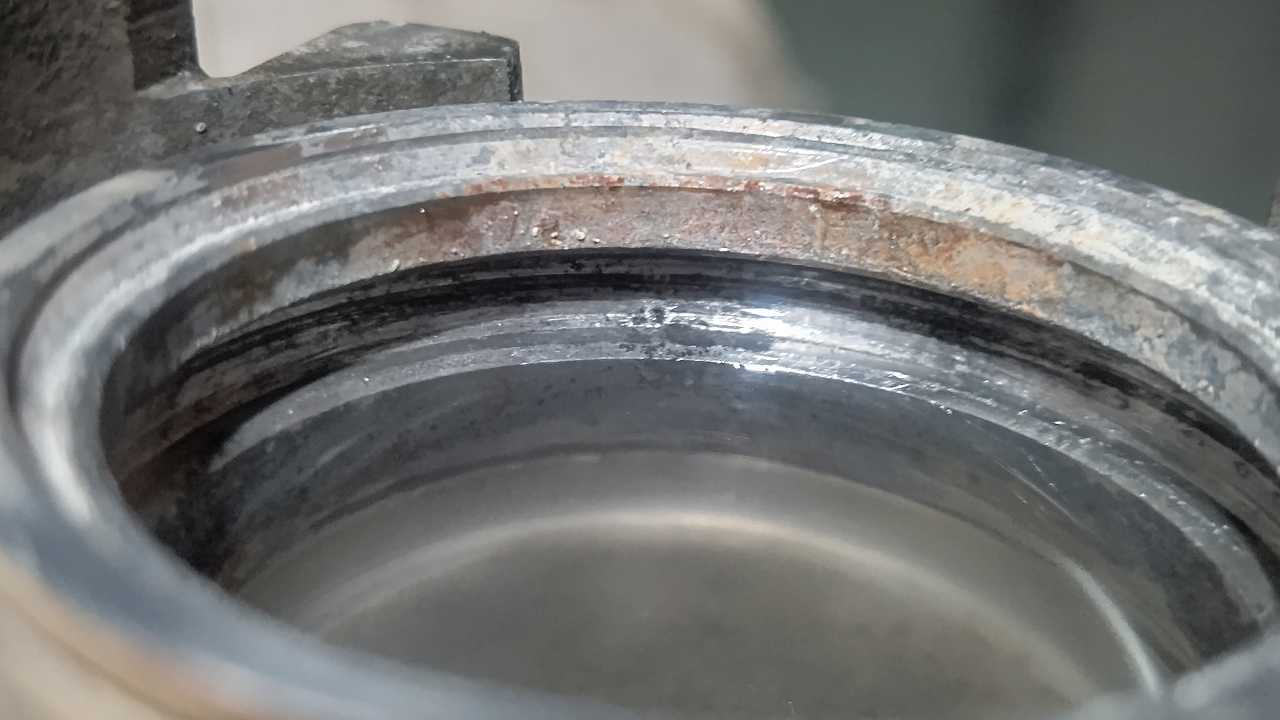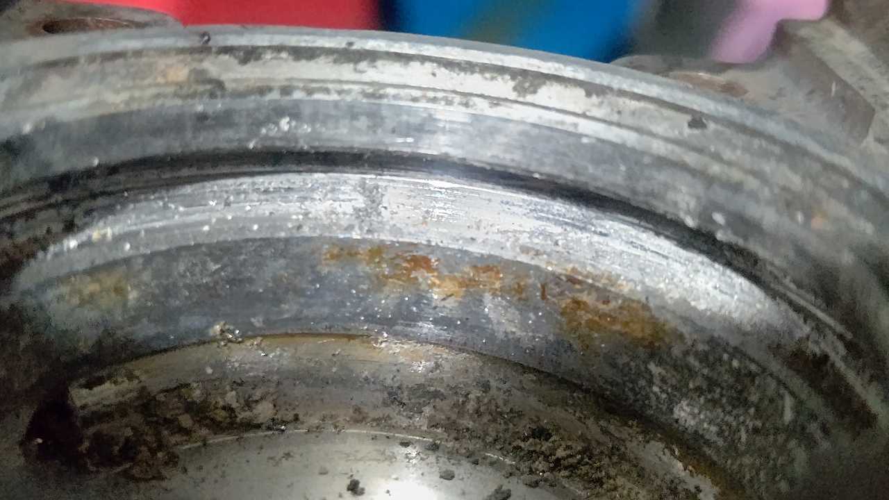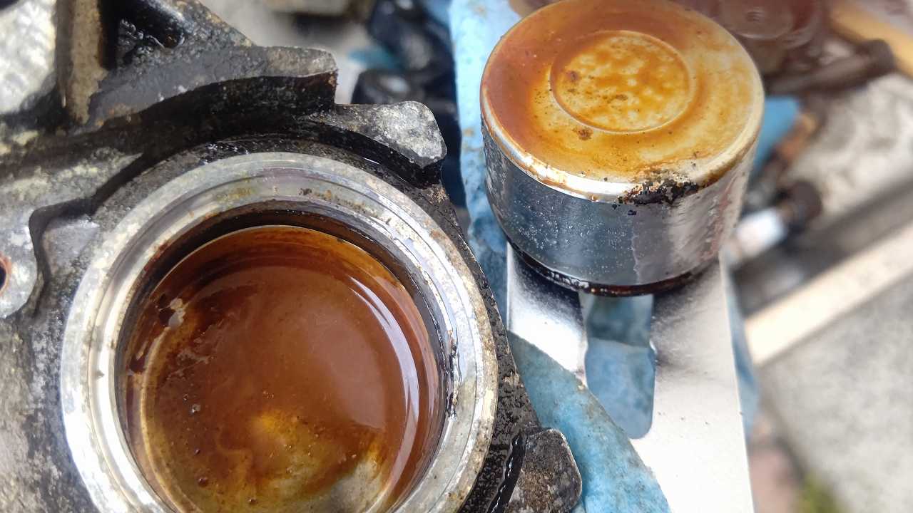 ペーパーで水研ぎしてからピカールか何かで磨いてみても落ちないですか?私は普段キャリパーホジ郎で大まかに腐食を落としてからリューターに真鍮のワイヤーブラシをつけてしっかり溝の腐食を落としてシリンダーにペーパー当てて仕上げにメタコンかピカール使ってます。