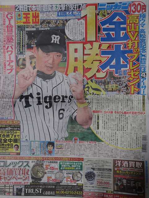 阪神は、岩田が前半絶望ということで、大ショックでした