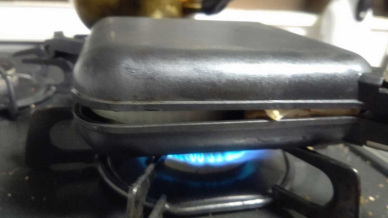 2022/02/17 和平フレイズ キャンプラス 折りたためるホットサンドメーカー でラムーのサンドイッチ焼きました