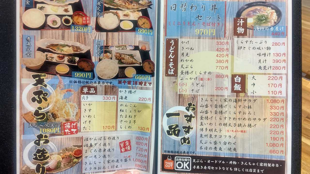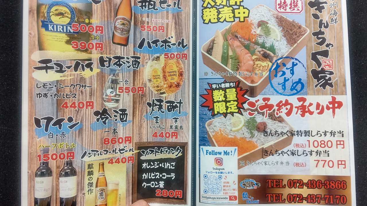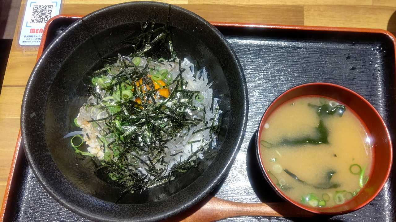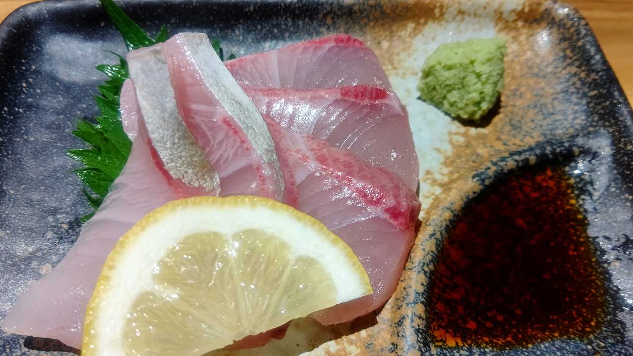 岸和田で、生シラス丼 800円と、活カンパチ造り 820円いただいてます。