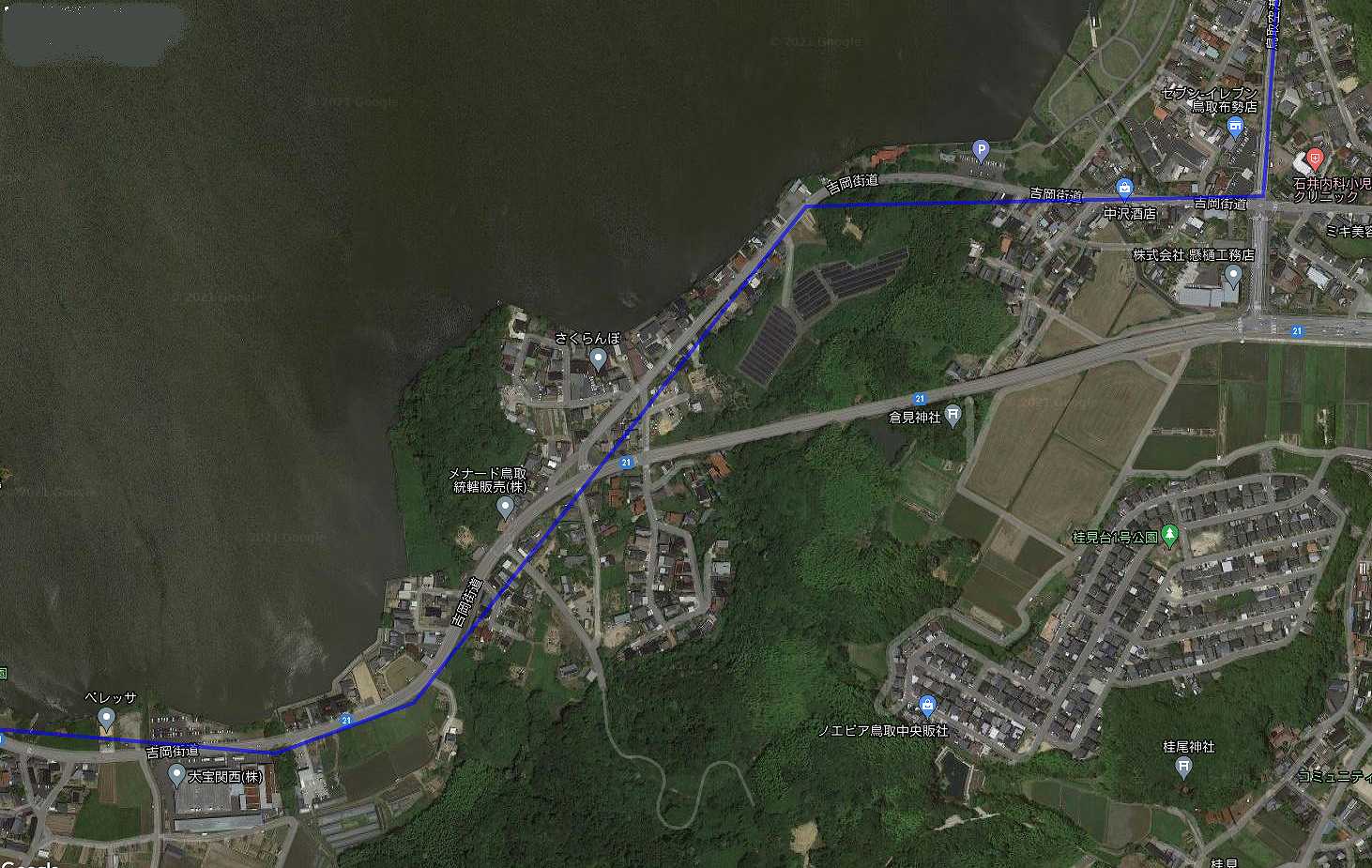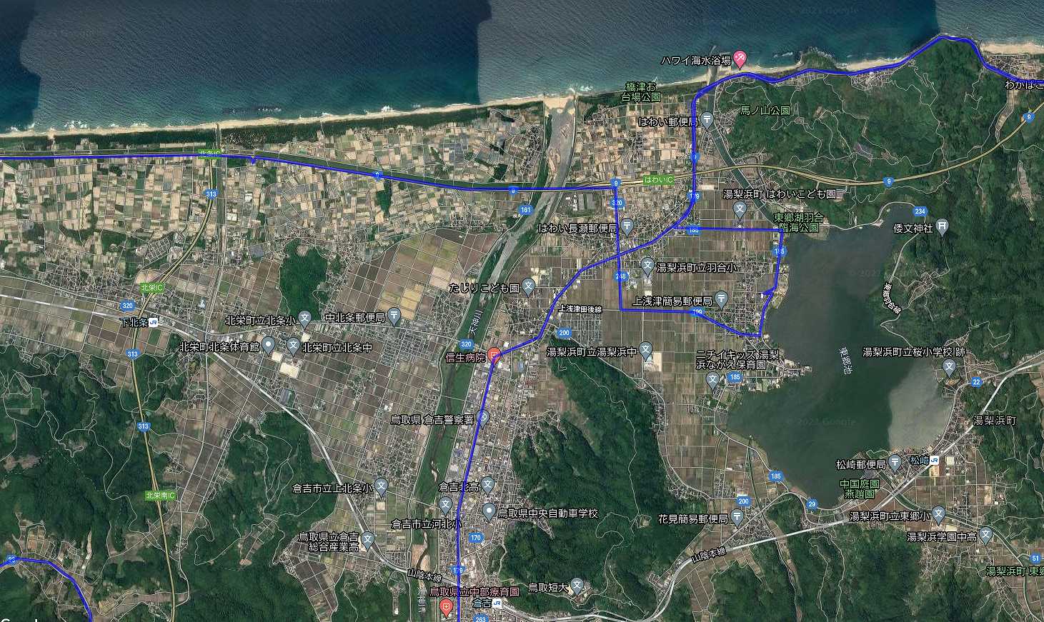 今は、山陰自動車道できてしまってますが、当時は、この道ですよね。。。タンデムで海岸線をずっと走って。。。喫茶店入ってパフェ食べたりってのが定番でした。。。