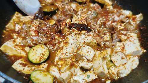 超激辛で、しびれますが、ズッキーニ、しいたけ、豚肉の甘味もあって、なかなかおいしい