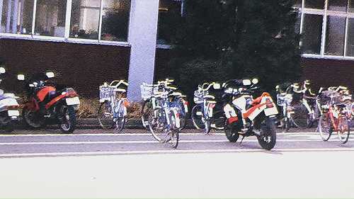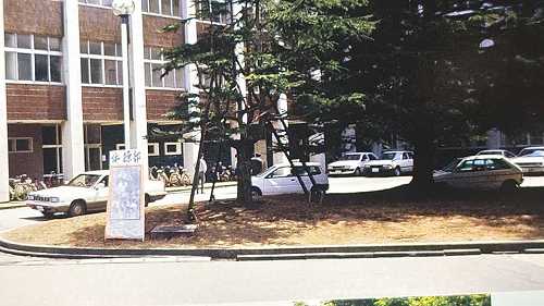 大学の中は、乗り入れ出来なかったと思うのだが、なんで、校舎の前に??