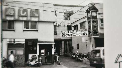この横の細い道を、踏切の方に行ったとこに、当時のギターアンサンブル部の先輩達がたくさんいた蓮池荘が。。。