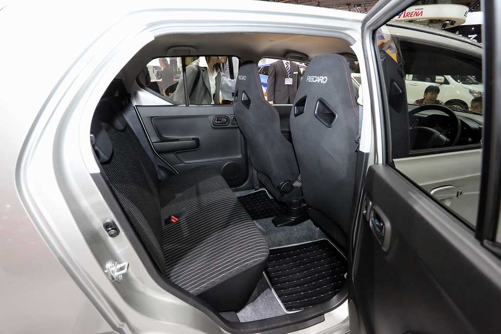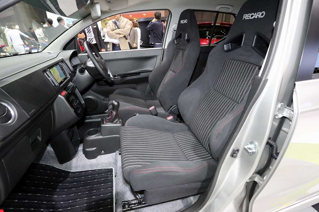運転席と助手席はレカロ製シート。リアシートはアルト ターボRSと同形状。ボディーはほかのアルトと同じなのでリアの足下は広い