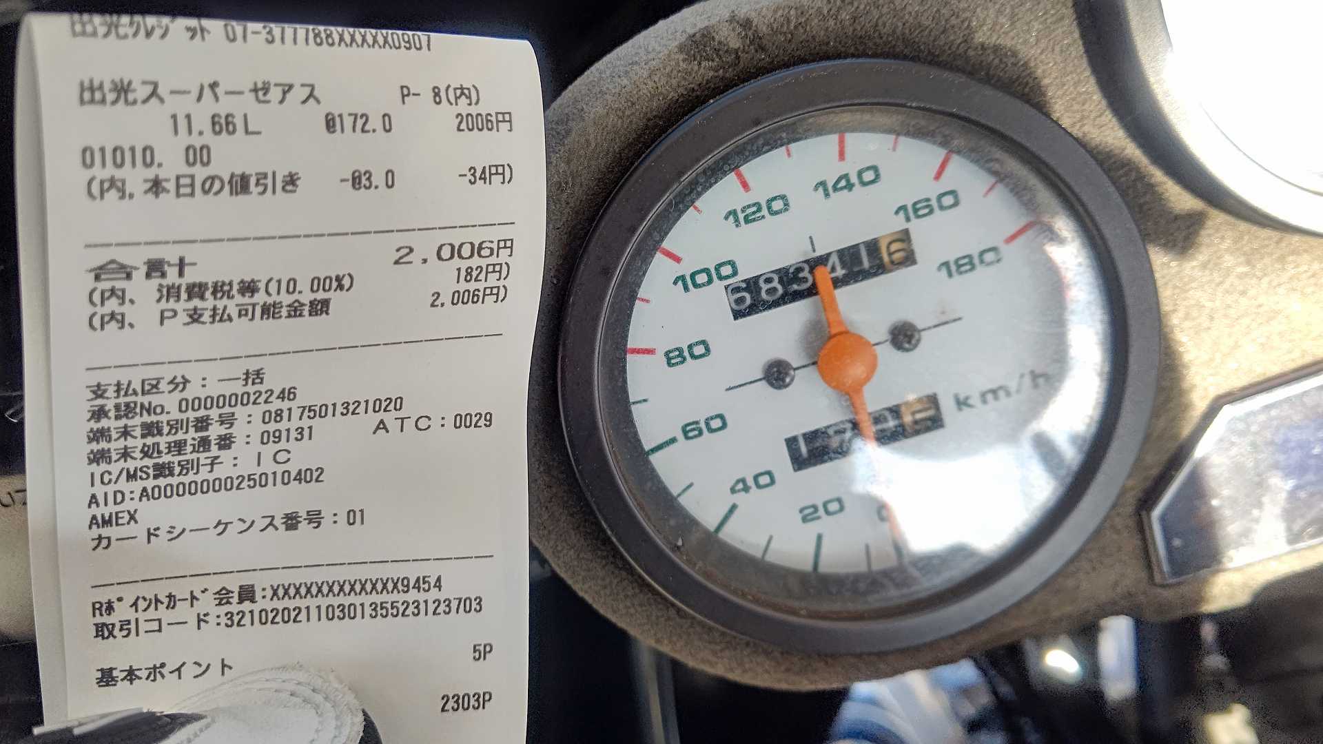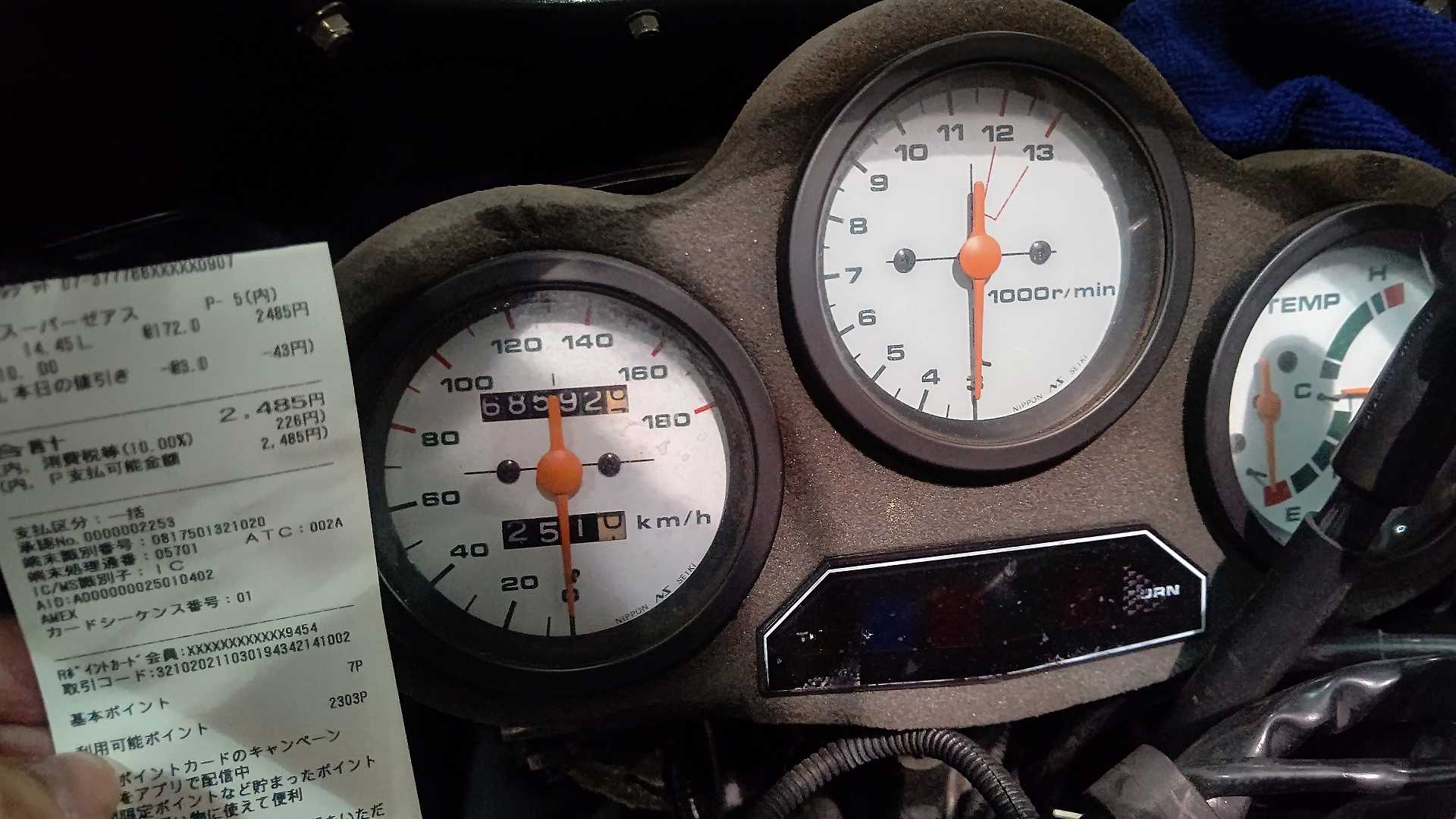 ガソリン、一周で無くなりました。。。出発の時に入れた男山で、ハイオク入れてやります