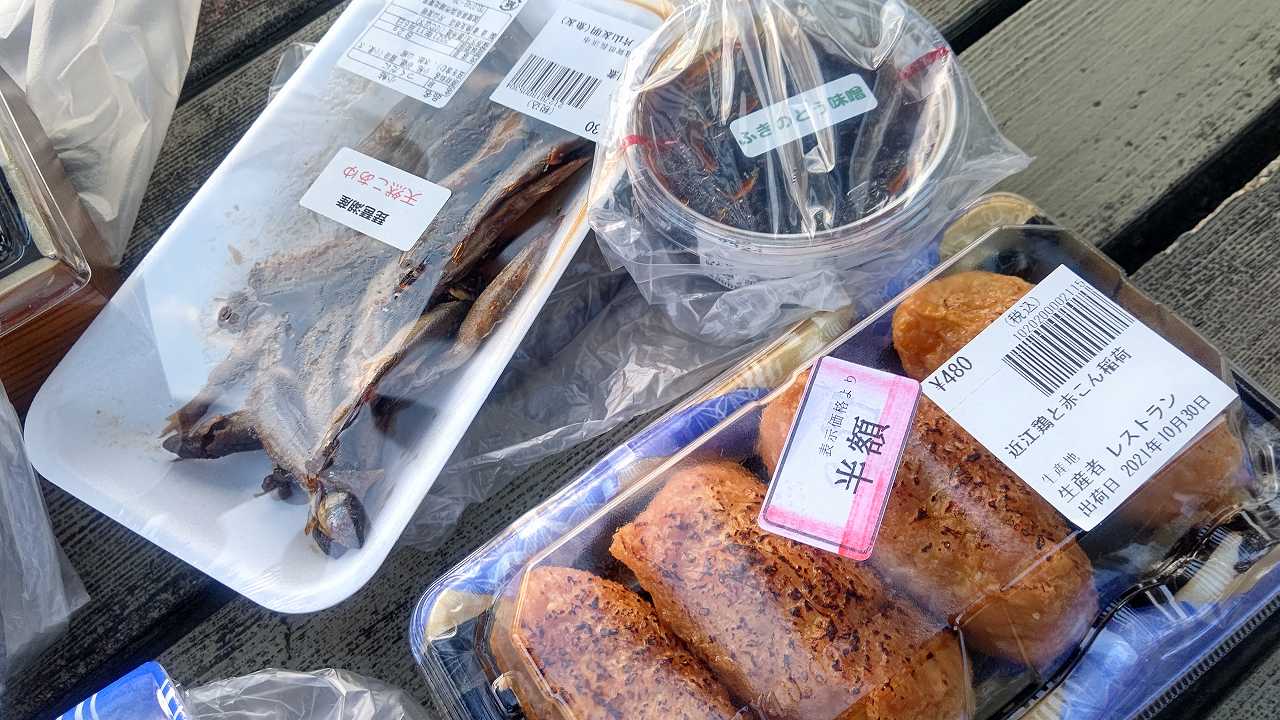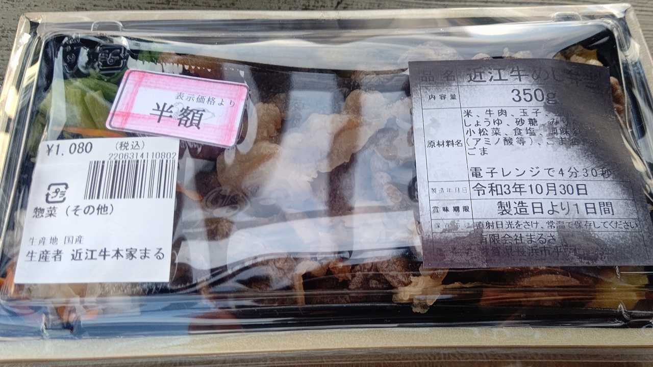近江牛弁当が半額になってたので、いただきました。鯖寿司も安いのあった!