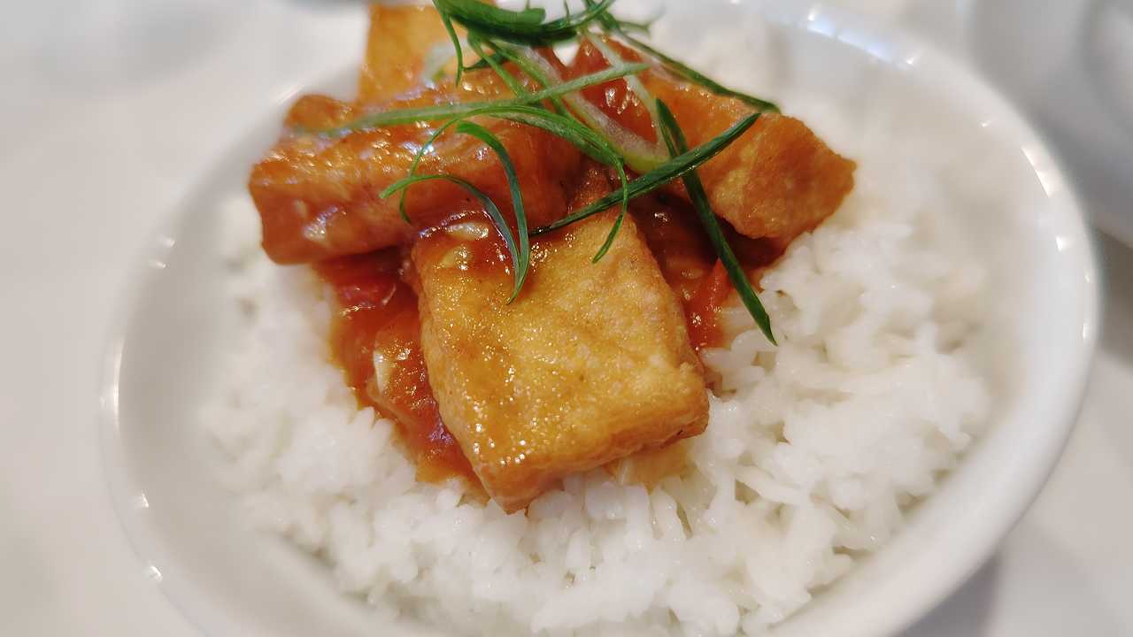 この前の鶏肉のやつが、あまりにも美味し過ぎたんですが、こちらは、よくあるフォーですね。御飯のほうも、ああ、トマトソースの揚げ豆腐だって感じ。