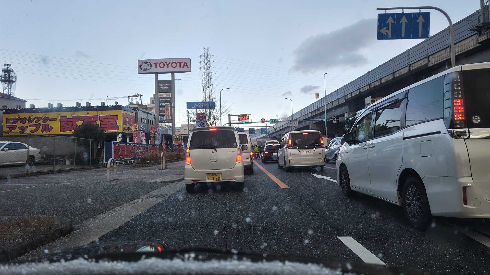 吹雪と渋滞の中、ALTOくんで帰ります。