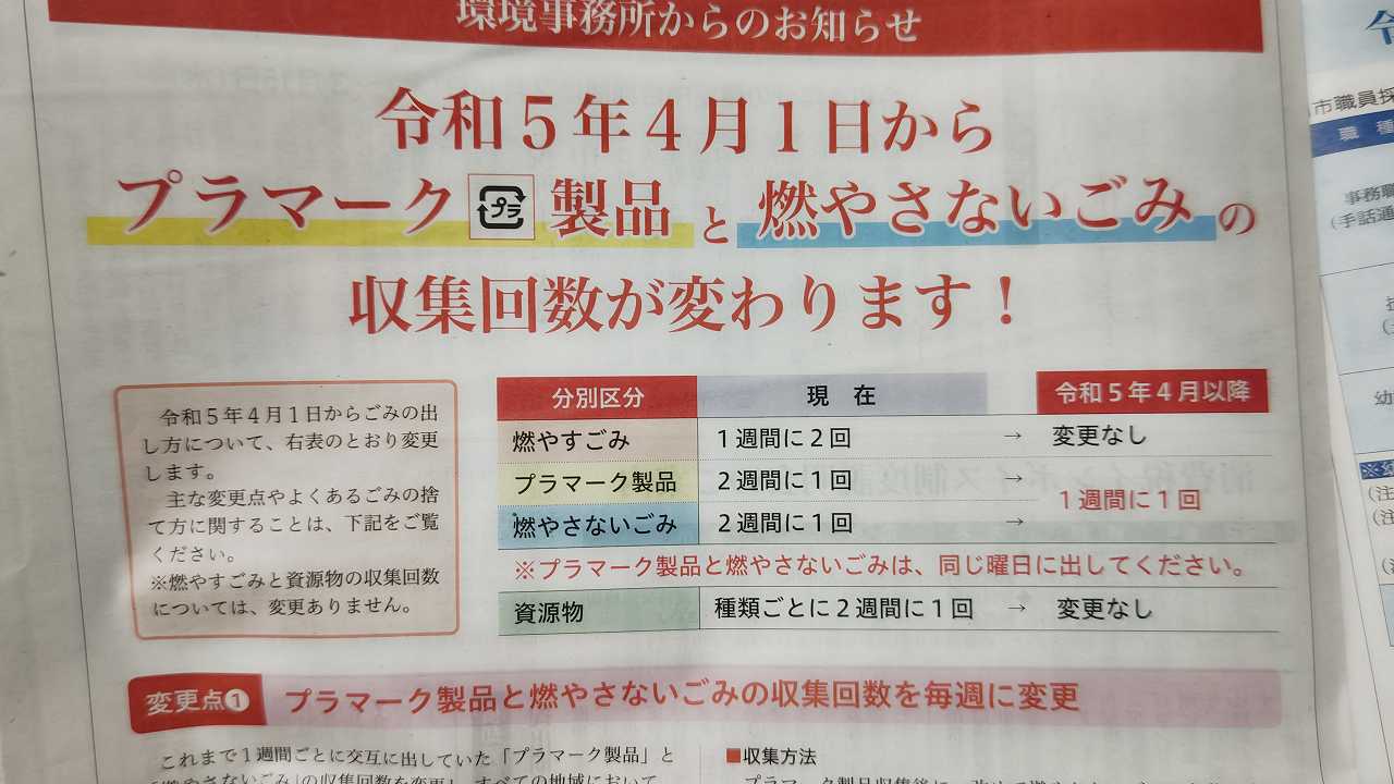 おお!!八幡市民念願の、プラゴミの収集が週一回になる!!!