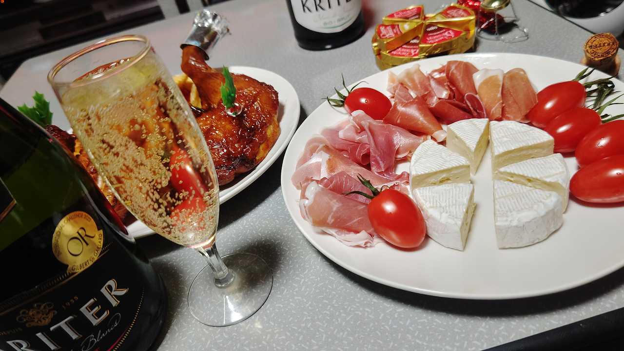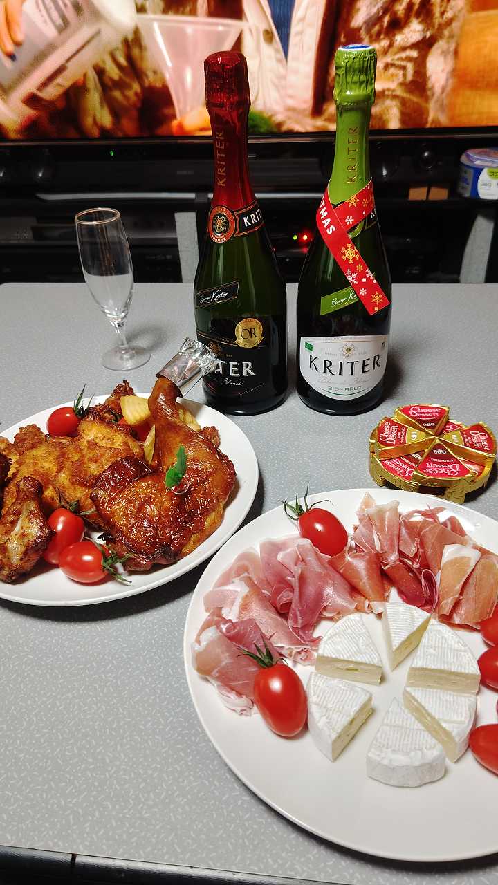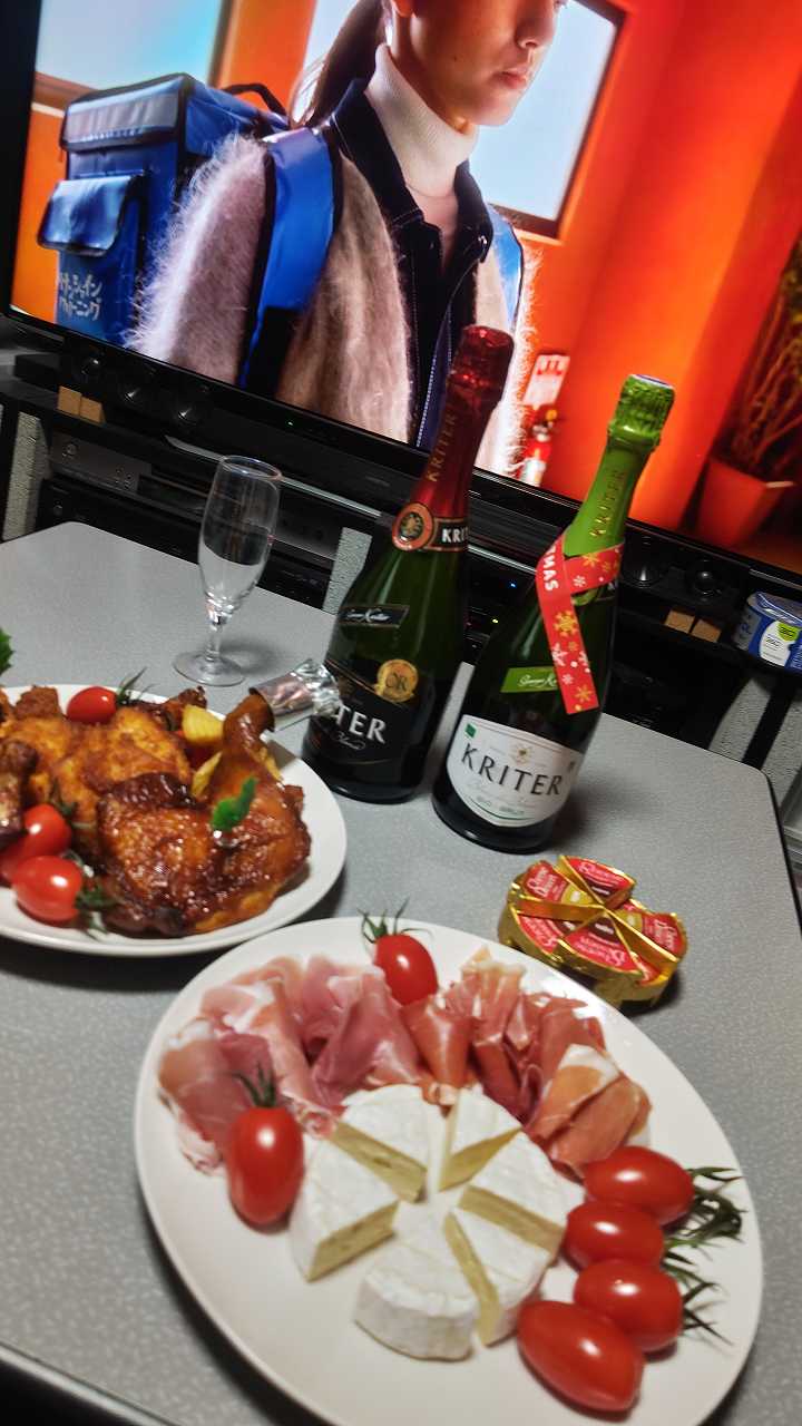 スパークリングワインとチーズ、生ハムは、さっき、リカマンで買ってきました。