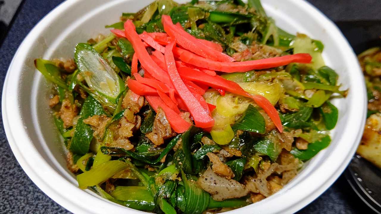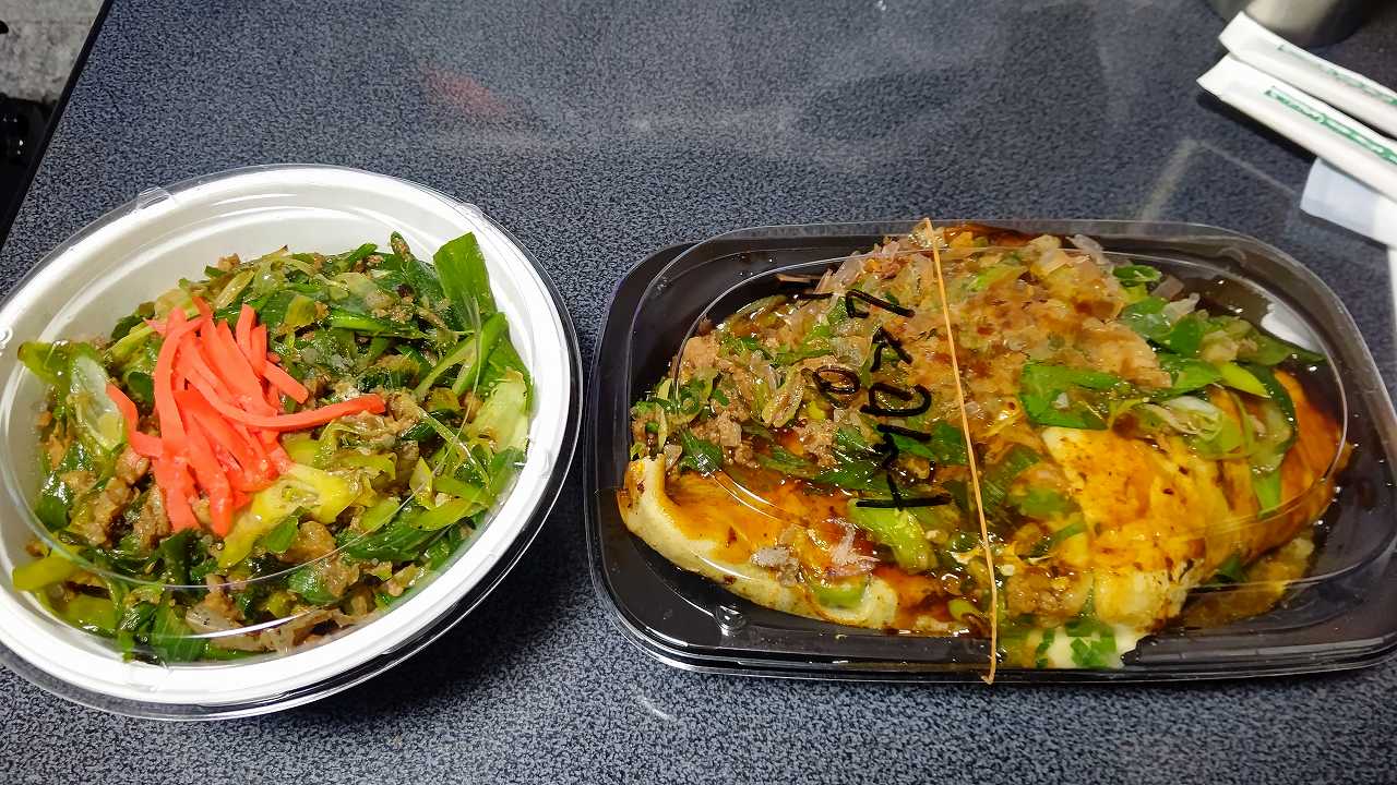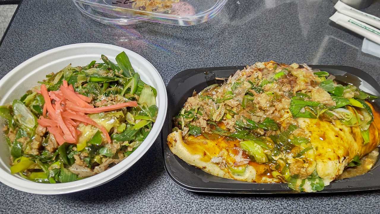 こちらの、ねぎ焼き、上に乗ってる分がトッピングですね。中身は、ネギとスジコン