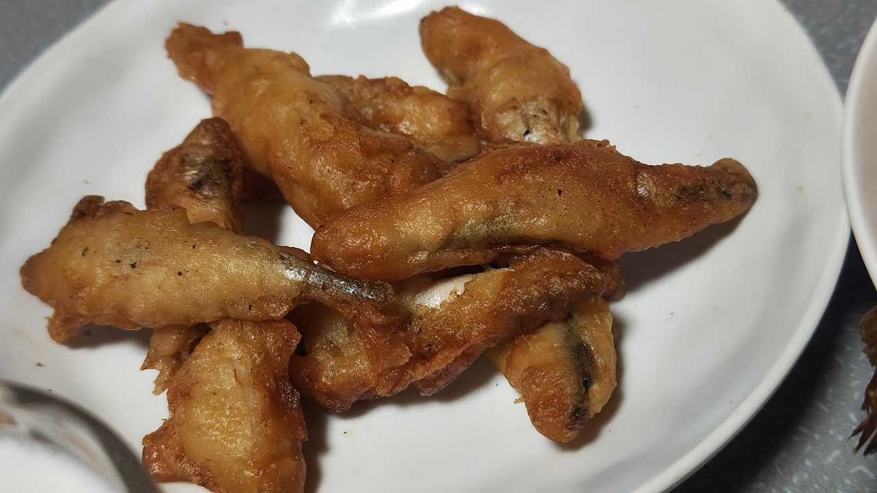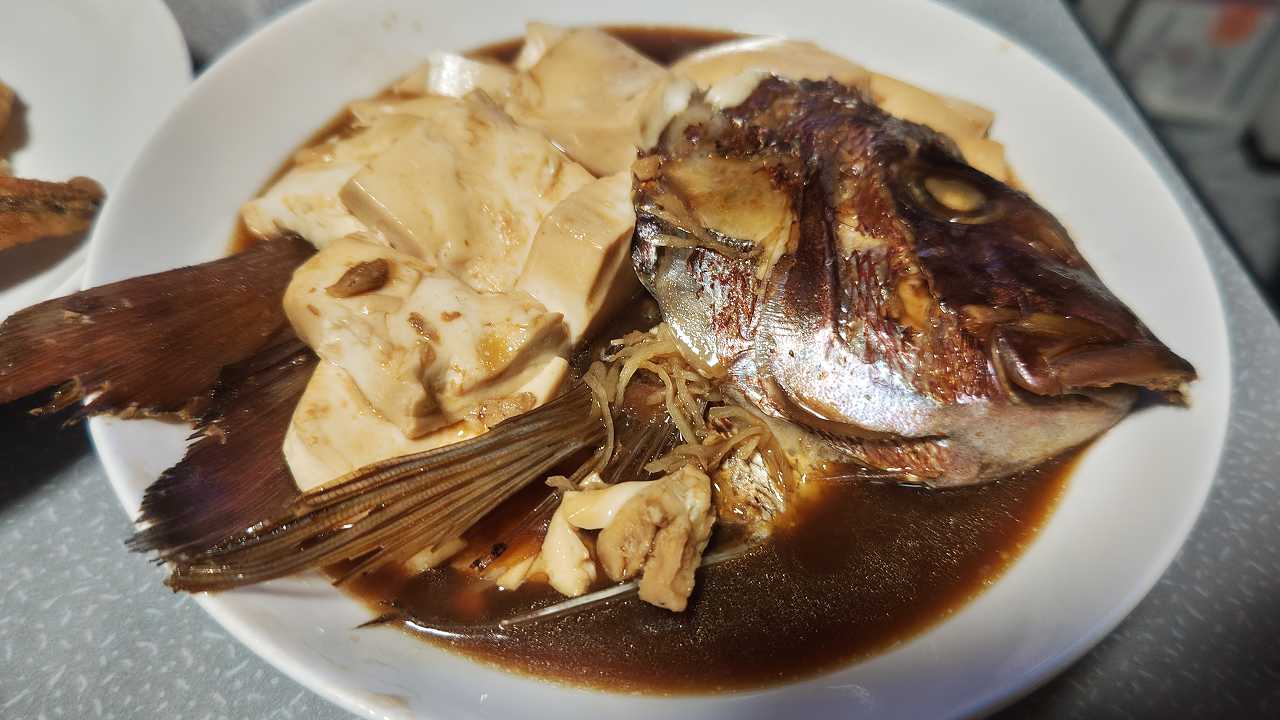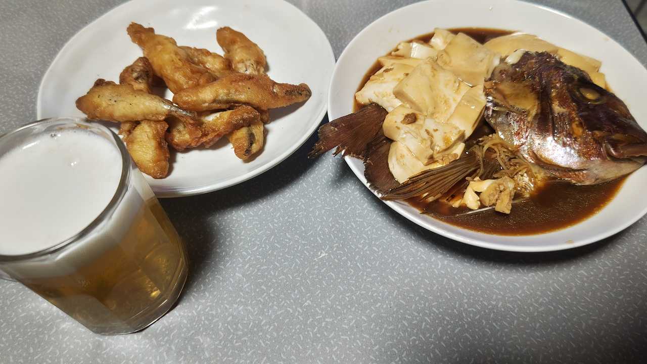 DREAM BEERと、わかさぎの天ぷら、アラで豆腐煮たやついただきました。