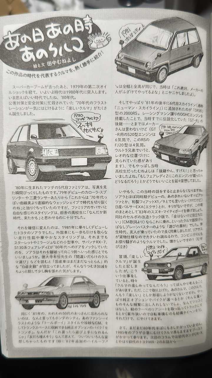 クルマのイラストレータとしても知られる作者が、この話の中に昭和の名車を沢山描き込んでいます。信号待ちのクルマや、レースに参戦しているクルマ等々。また、初代トヨタクラウン、スバル360、トヨタコロナ、日産ブルーバード、日産フェアレディZなど時代を代表するクルマの著者のコラムも1話ごとに掲載。懐かし名車ファン必見です。