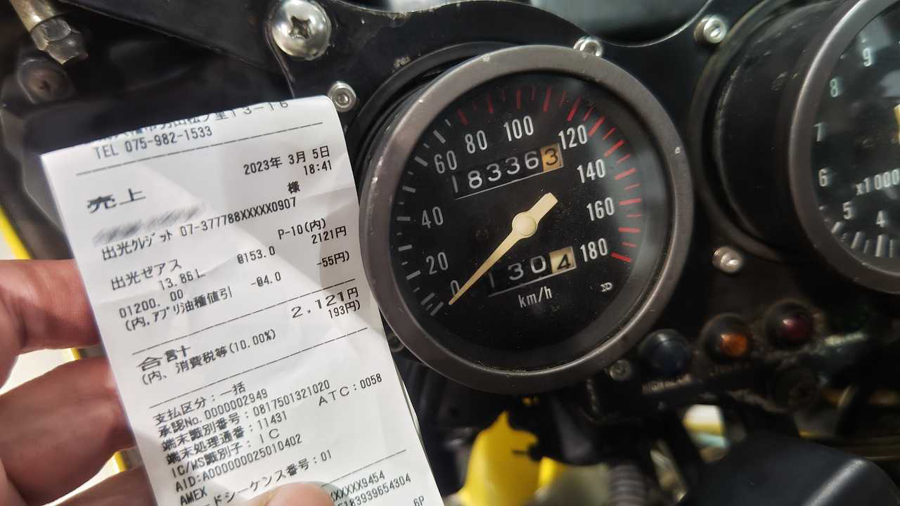 リザーブにしてから20㎞。底のほうに、うっすら、まだガソリンはありましたね。